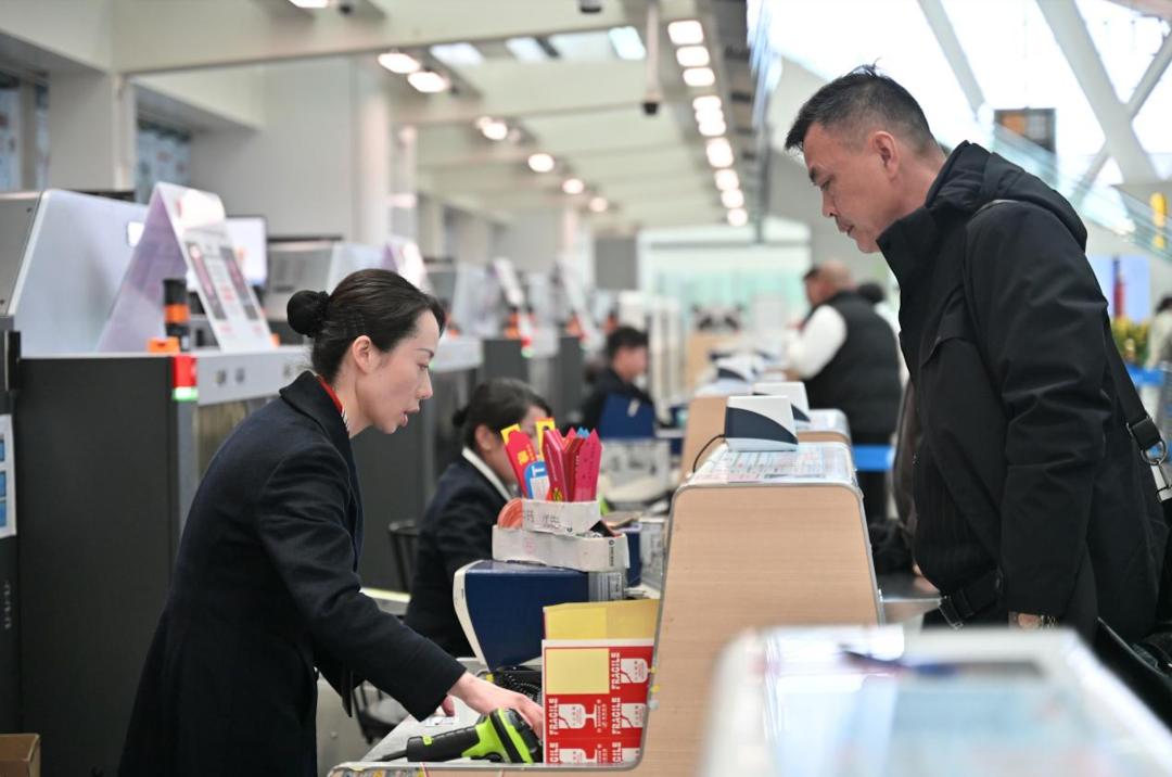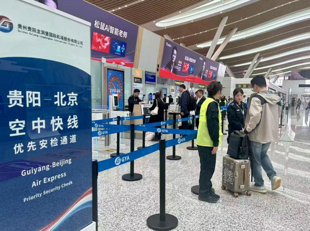 贵阳至北京空中快线自3月23日试运行以来,贵阳机场始终坚持“安全优先、资源倾斜、流程最优、协同高效”原则,优先配置快线航班保障资源,让每一位旅客都能感受到“专属礼遇”。在贵阳机场2号航站楼、3号航站楼开设贵阳至北京空中快线专属值机柜台,让旅客办理登机、行李托运等手续实现即到即办、快速办理。专门开通快线优先安检通道,布设清晰标识,安排维序人员动态引导,大幅缩短过检等待时间。在机位分配上,对快线航班予以重点保障,优先安排靠近安检口的廊桥机位,有效减少旅客步行距离,真正实现“少走路、少等待、快登机”。