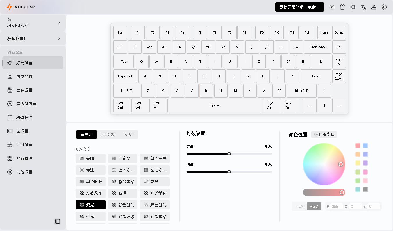 驱动方面必须吹一波,ATK 自研的双端驱动真的是 T0 级好用,网页版不用下载软件,打开浏览器输个网址就能调参数,电脑小白也能轻松搞定。里面功能超全,RT 调节、SOCD、DKS、改键、宏编程全都有,还有内置的职业选手预设,一键切换就能 get 大神同款手感,对新手太友好了。
