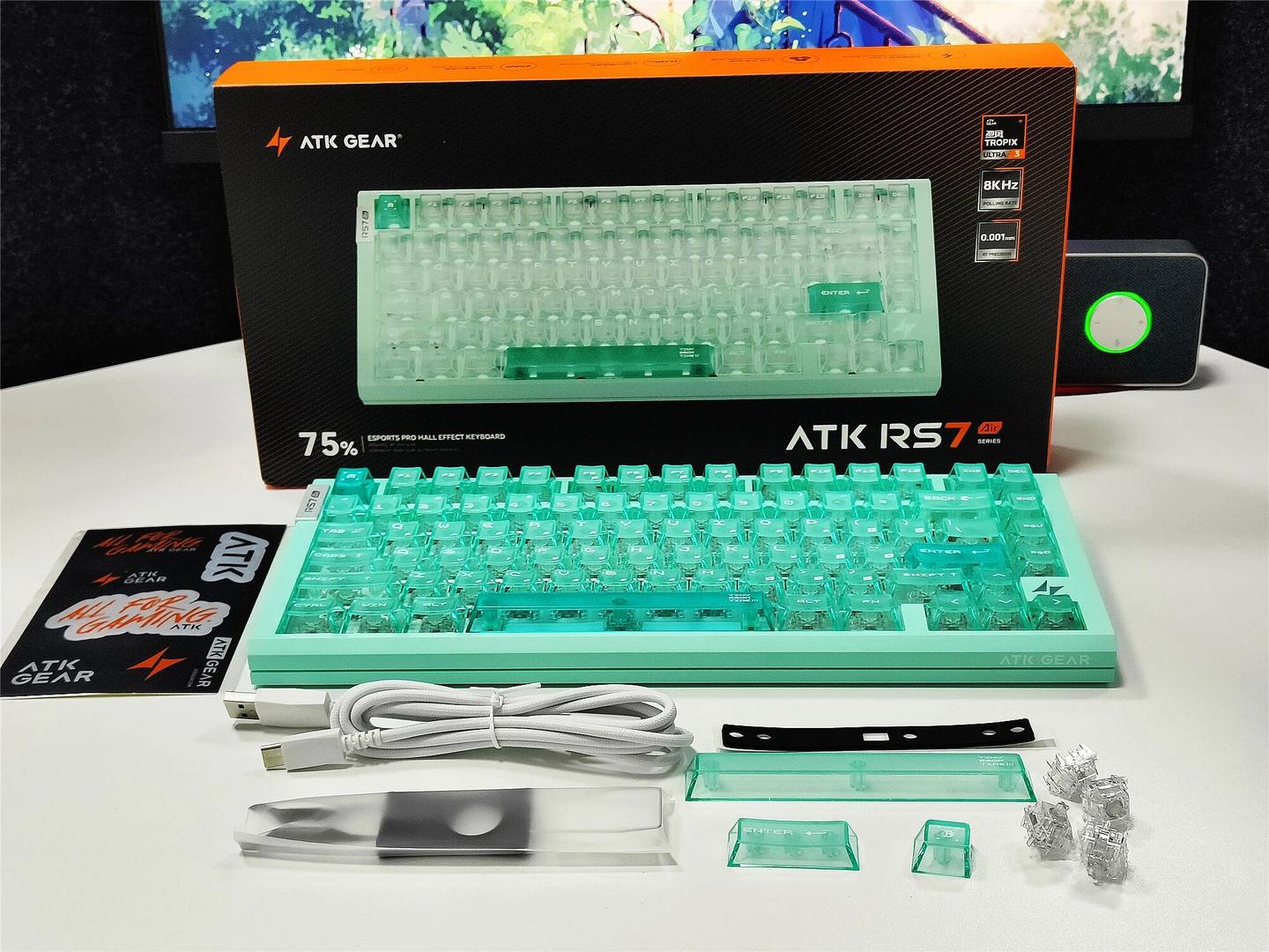 最近有关注电竞外设的玩家应该都知道,ATK 现在可是国产外设第一梯队的狠角色,旗下 RS 系列磁轴键盘也因为打瓦世界冠军也用同款而水涨船高,成为了近期的爆款常客。这次新出的 RS7 Air 在研颜值上,机甲风设计+湖水绿配色,清新又硬核的反差感直接真的非常顶,加上是烈风三代 Ultra 自研磁轴方案,果断冲了一波首发!