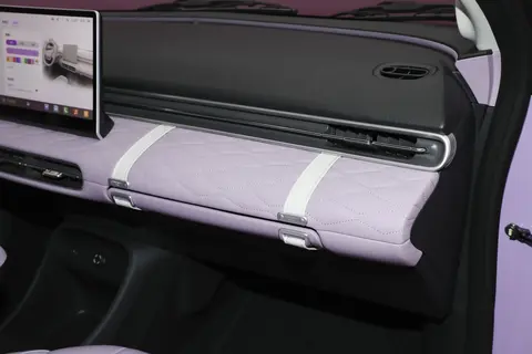 内饰质感也远超我的预期,我选的紫黑拼色内饰,浪漫又温柔,每次坐进车里,烦躁的心情都能平复下来。仪表板和车门护板有大面积的巴黎菱格纹皮质包裹,上手摸起来软软糯糯的,完全没有廉价的塑料感。车内的氛围灯也很懂女生,支持多种颜色和模式切换,晚上开车时调暗一档,配上喜欢的歌单,通勤路都变得治愈起来。