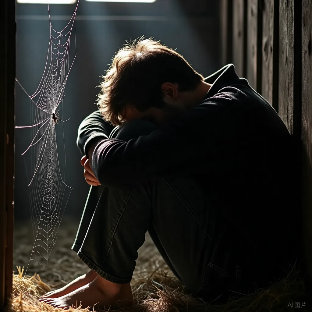 光带从门缝移到墙上,又从墙上移到地面。灰尘在光柱里飞舞得更欢了。那只蜘蛛已经织好了大半张网,正趴在网中央,等待着猎物。