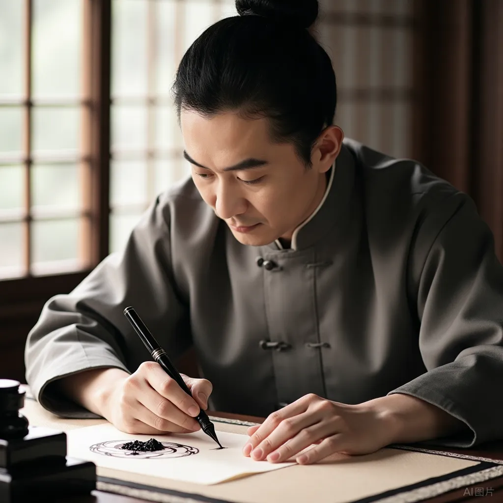 他写得很慢,每一个字都经过深思熟虑。炭笔在纸上沙沙作响,像春蚕啃食桑叶,又像细雨敲打屋檐。