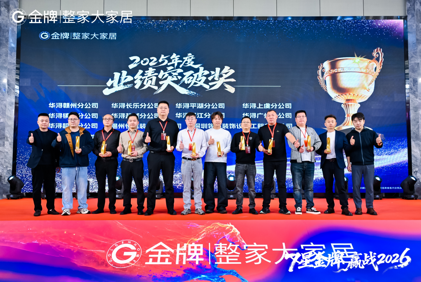 一直以来,金牌坚持拥抱装企,战略同频,同心同行。回望2025,我们于变局中开新局,在挑战中育先机。在全国各地涌现出一大批优秀装企伙伴及标杆门店,他们深耕终端、锐意进取,以新模式、新战法制胜整装市场,实现业绩强势增长。本次会议特设2025年度业绩贡献奖、2025年度业绩突破奖、2025年度业绩进步奖三大奖项,表彰先进、树立标杆,未来共续佳绩。