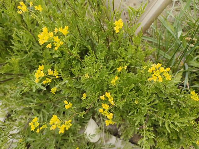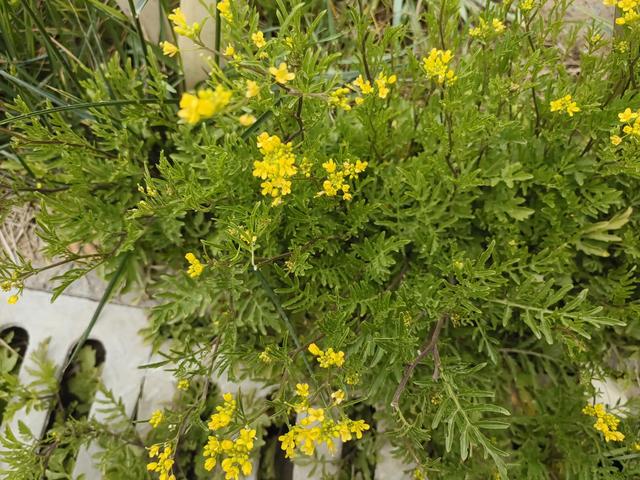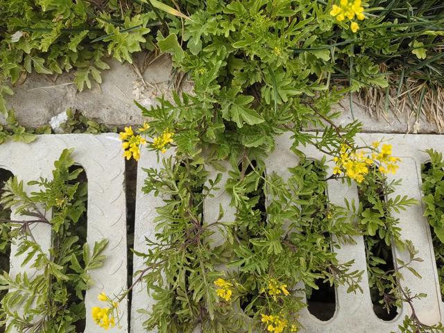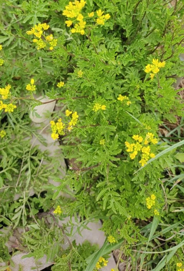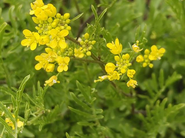 前几天在水渠边碰到一种草本植物,植株不高,开着黄花,花瓣4个,回家后查阅资料得知它叫沼生蔊菜。