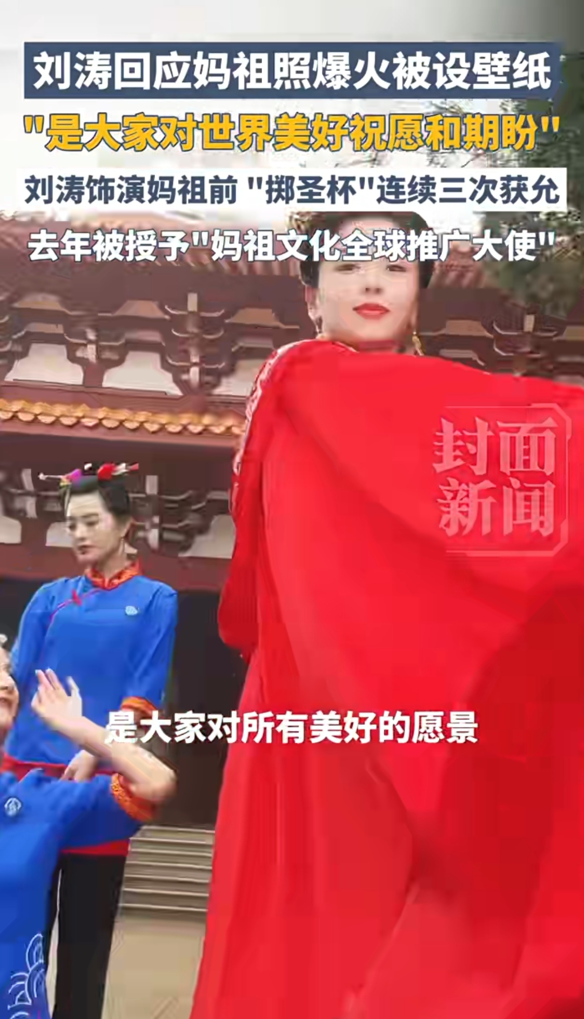 面对这波突如其来的“封神”操作,刘涛本人终于回应了。她没有沾沾自喜,反而用一句温柔的话点破了这场现象背后的本质:“这并非个人光环,而是大家对世界的美好祝愿和期盼。”这番清醒且谦逊的表态,不仅展现了极高的情商,更让我们看到了一个演员与一个文化符号之间,长达十余年的深度羁绊。01 高情商回应:从“个人光环”到“集体祝愿”当得知自己的剧照被奉为“电子护身符”,甚至有沿海家庭将其与神像并列供奉时,刘涛的反应出人意料地冷静与通透。她在回应中明确表示,这一现象的核心并非演员个人的魅力,而是大众借由妈祖这一形象,寄托了对生活、对未来、对社会的普遍祈愿。她谦逊地将自己定位为“文化的传播者”和“期盼的载体”,强调妈祖文化“立德、行善、大爱”的精神内核,而非神化自身。这种既尊重信仰严肃性,又弱化个人色彩的态度,被网友盛赞为“格局拉满”。在流量至上的娱乐圈,刘涛没有选择消费这波热度,而是将其转化为对传统文化的推广,这种敬畏心尤为珍贵。