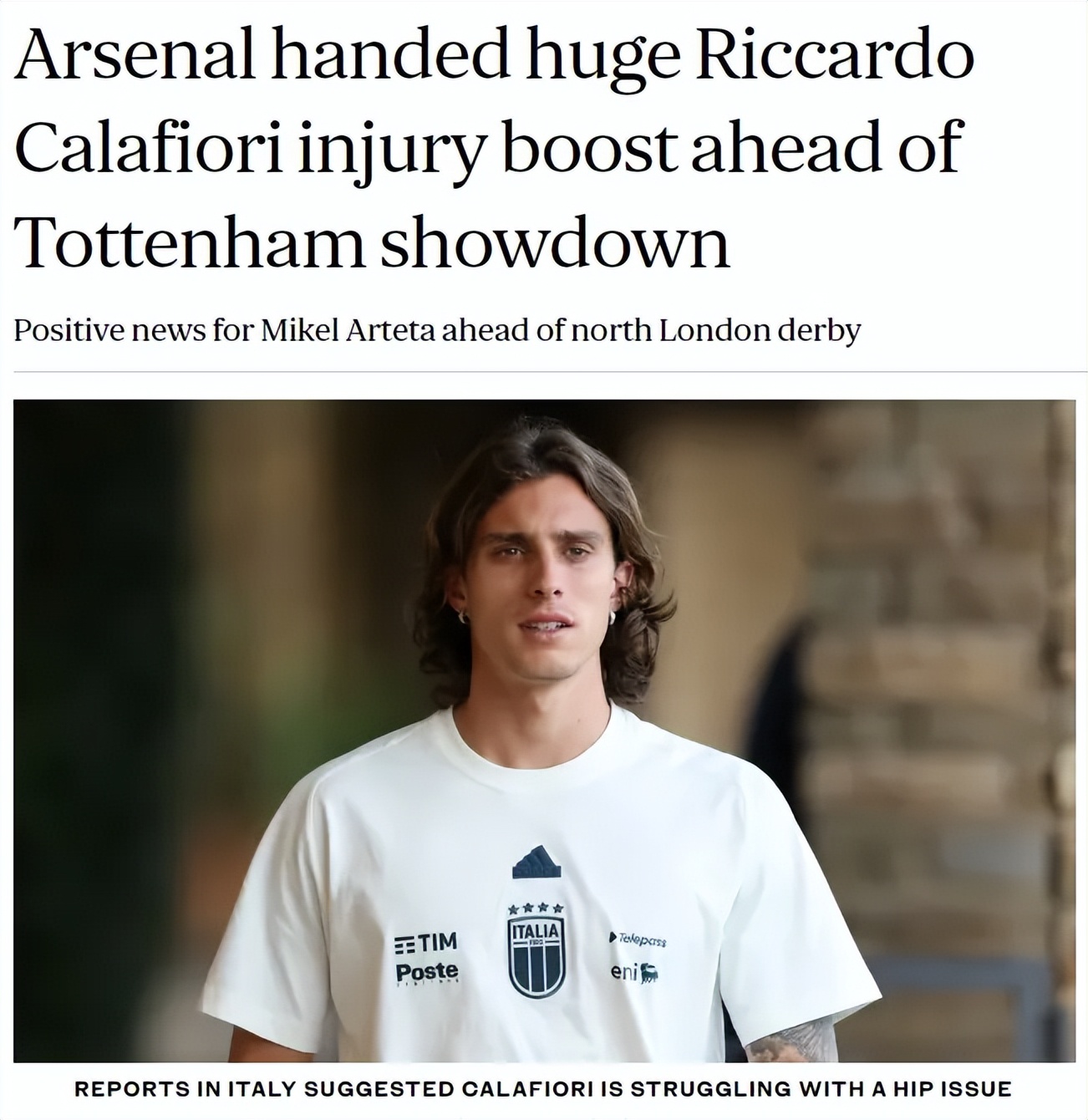 伦敦晚旗报记者SC消息,意大利希望卡拉菲奥里能赶上周日对挪威的比赛,这对阿森纳来讲是利好。