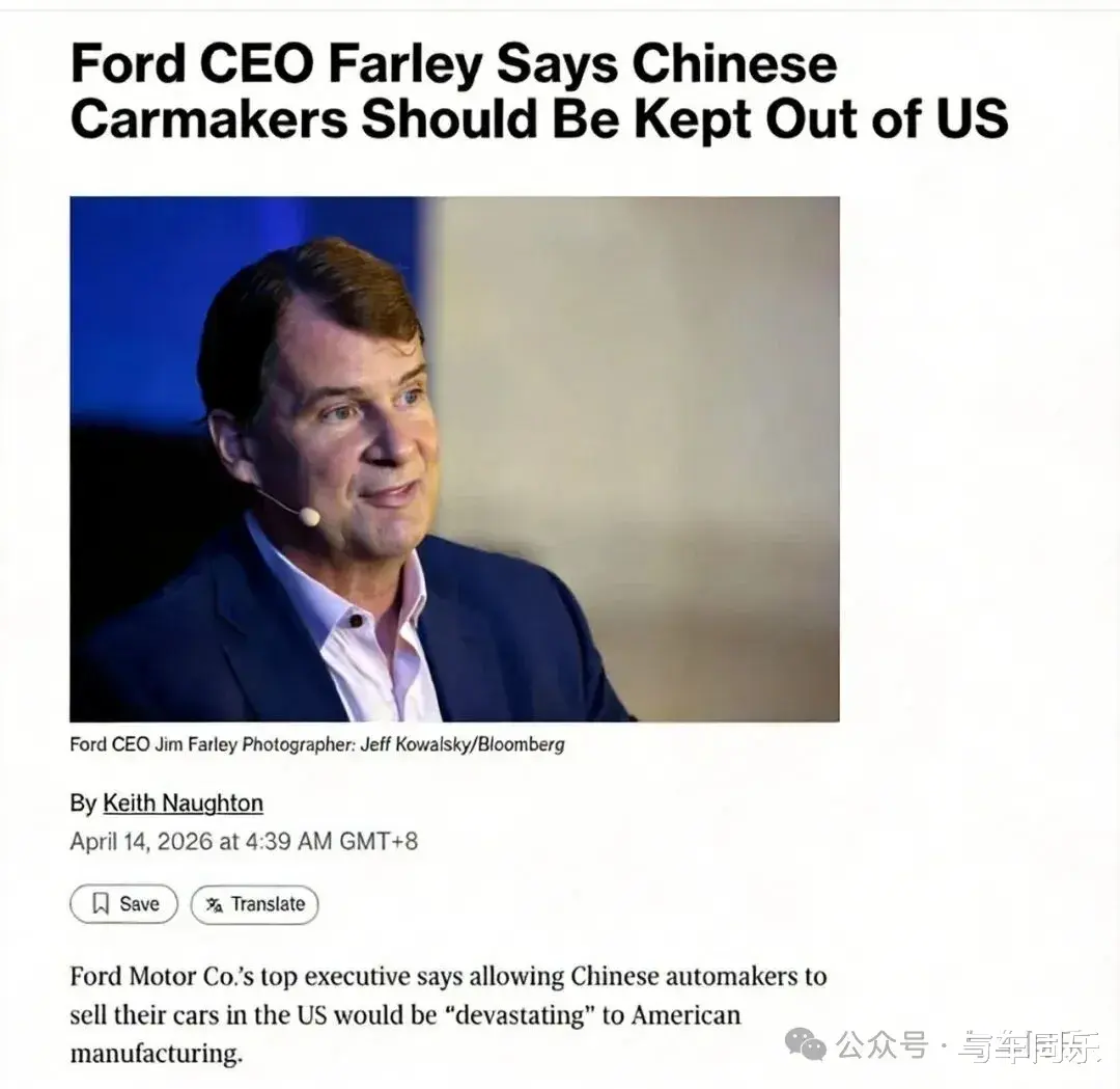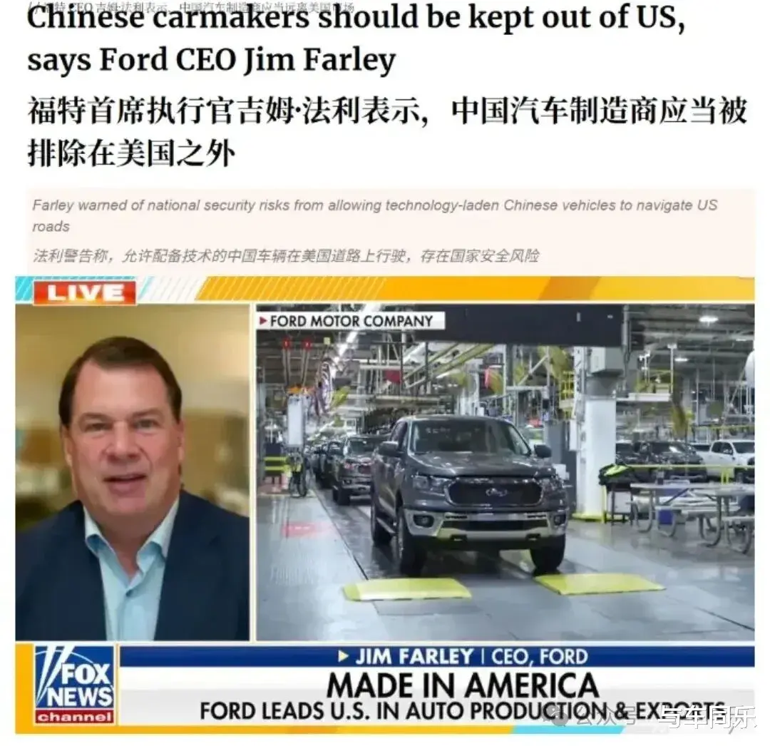 福特CEO吉姆・法利去年买了一辆小米SU7,在美国开得那个爽,还让人觉得福特要跟小米有合作机会。然而最近的一次访谈中,吉姆・法利终于现出原形,他的观点是:绝对不能让中国车企进入美国市场。
