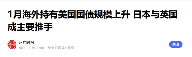 证券时报 2026-03-19——1月海外持有美国国债规模上升 日本与英国成主要推手