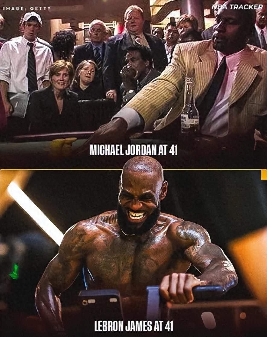 为了更直观地感受勒布朗 - 詹姆斯这种职业生涯的持久力和伟大,我们不妨将他与篮球之神迈克尔 - 乔丹做一个对比。迈克尔 - 乔丹无疑是篮球史上最伟大的球员之一,他的成就和影响力至今无人能及。然而,当迈克尔 - 乔丹到了41岁这个年纪的时候,他早已退役,远离了赛场。乔丹在1998年第二次退役后,虽然在2001 - 2003赛季短暂复出,但最终还是选择彻底告别篮球。而勒布朗 - 詹姆斯在同样的年纪,依旧活跃在赛场上,并且保持着相当高的竞技水平,带领着湖人队为季后赛的胜利而拼搏。