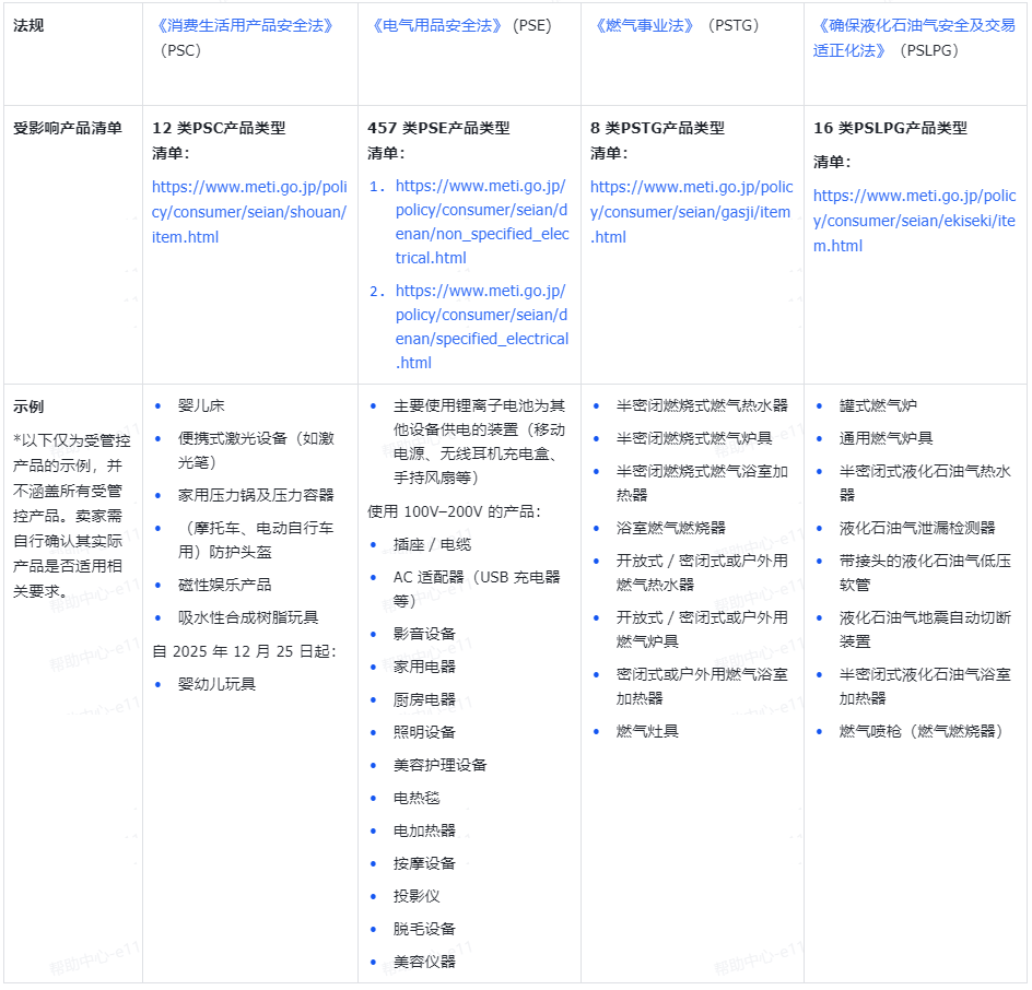 根据<<产品安全法>>(PS法),受管控产品被分为四类,每类均有特定要求: