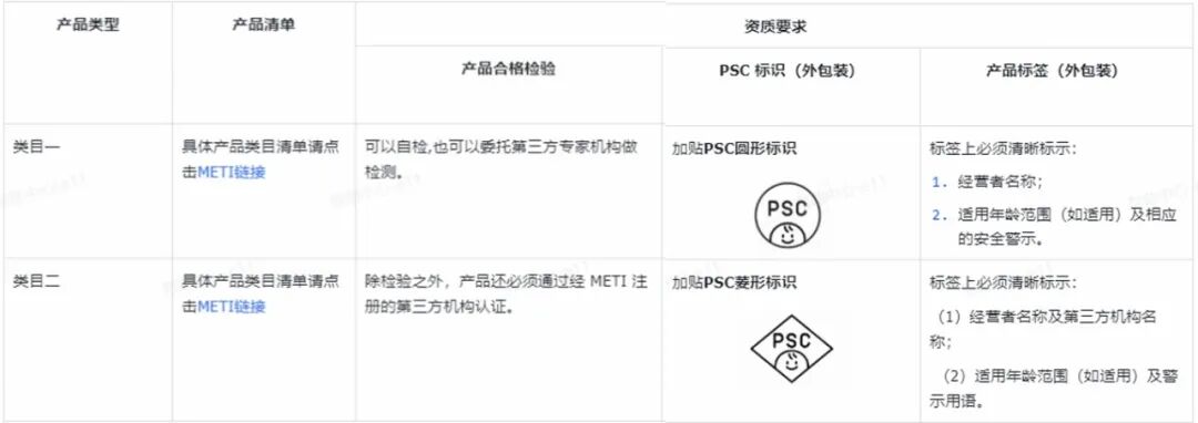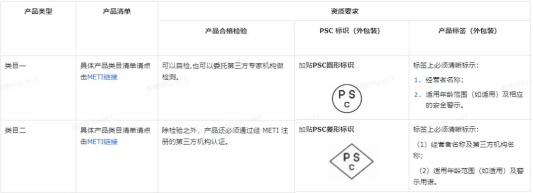 圆形PSC需提供符合<<消费生活用产品安全法>>要求的检验记录;菱形PSC则需同时提供检验记录和由已注册的合格评定机构出具的合格证书