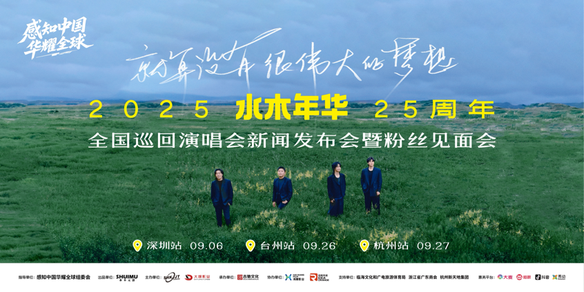 7月13日,“就算没有很伟大的梦想”水木年华25周年巡回演唱会新闻发布会暨粉丝见面会在杭州温情启幕。此次备受瞩目的巡回演唱会,不仅承载着水木年华与乐迷跨越四分之一世纪的深厚情谊,更凭借其独特的音乐魅力与文化内涵,成功入选感知中国·华耀全球音乐盛典项目库优质项目。当天,卢庚戌、缪杰、陈秋桦、于盛四位成员悉数亮相,与翘首以盼的乐迷共赴这场意义非凡的重逢之约。下午时分,率先开启巡演的三座城市正式公布,分别是9月6日深圳站、9月26日台州站、9月27日杭州站,其中杭州站已率先启动预售。