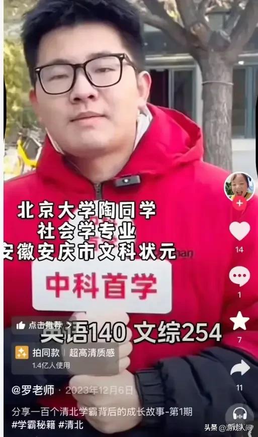 不久就有网友扒出了陶文俊的过往,得知他当年高考660分,还是安庆市的文科状元,英语140分,文综254分。