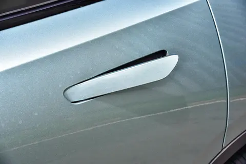 车辆外部设计配置的内容更多,比如无框车门、隐藏式门把手成为系列标配,便于美化外观形象,还能辅助降低风阻干扰。纯电款式另外增加了主动闭合式进气格栅设计,电驱主导应用,市区短途常态应用关闭进气开口即可,电机本身散热需求就低,仅高速行车时开启扰流使用。增程、纯电能源的高配款式还增加了电动扰流板标配,虽说款式为B级定位,但运动与时尚化的设计元素并不少。
