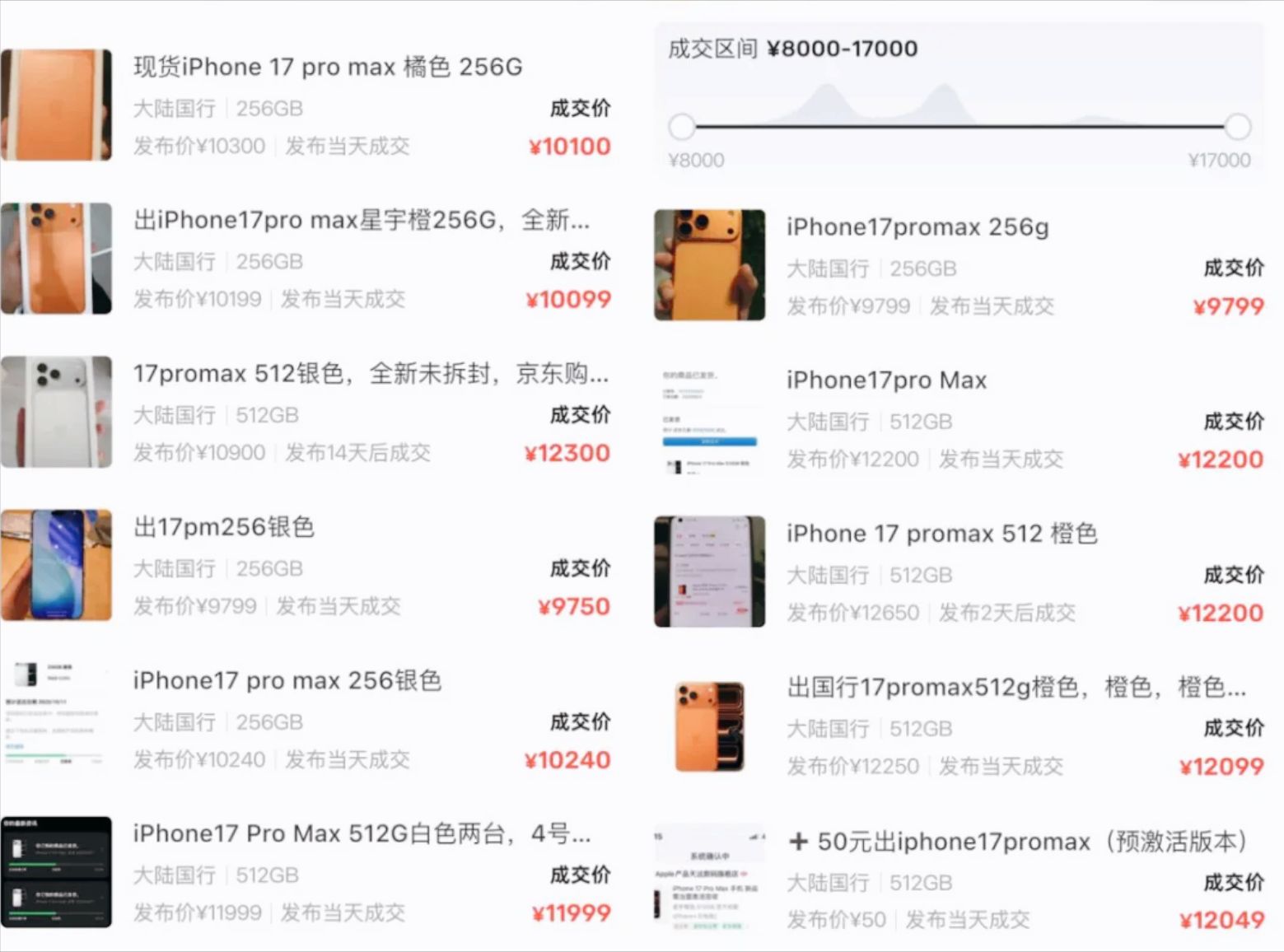 现在的iPhone17ProMax已经正式从“黄牛收割期”过渡到了“渠道理性期”。