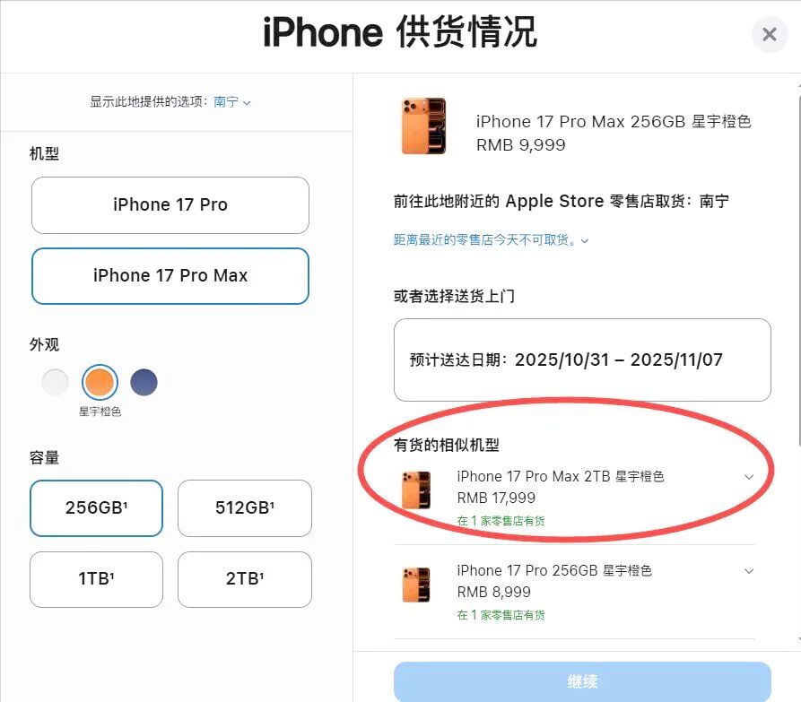 反倒是广西南宁的苹果门店,竟然还有一台2TB的橙色!