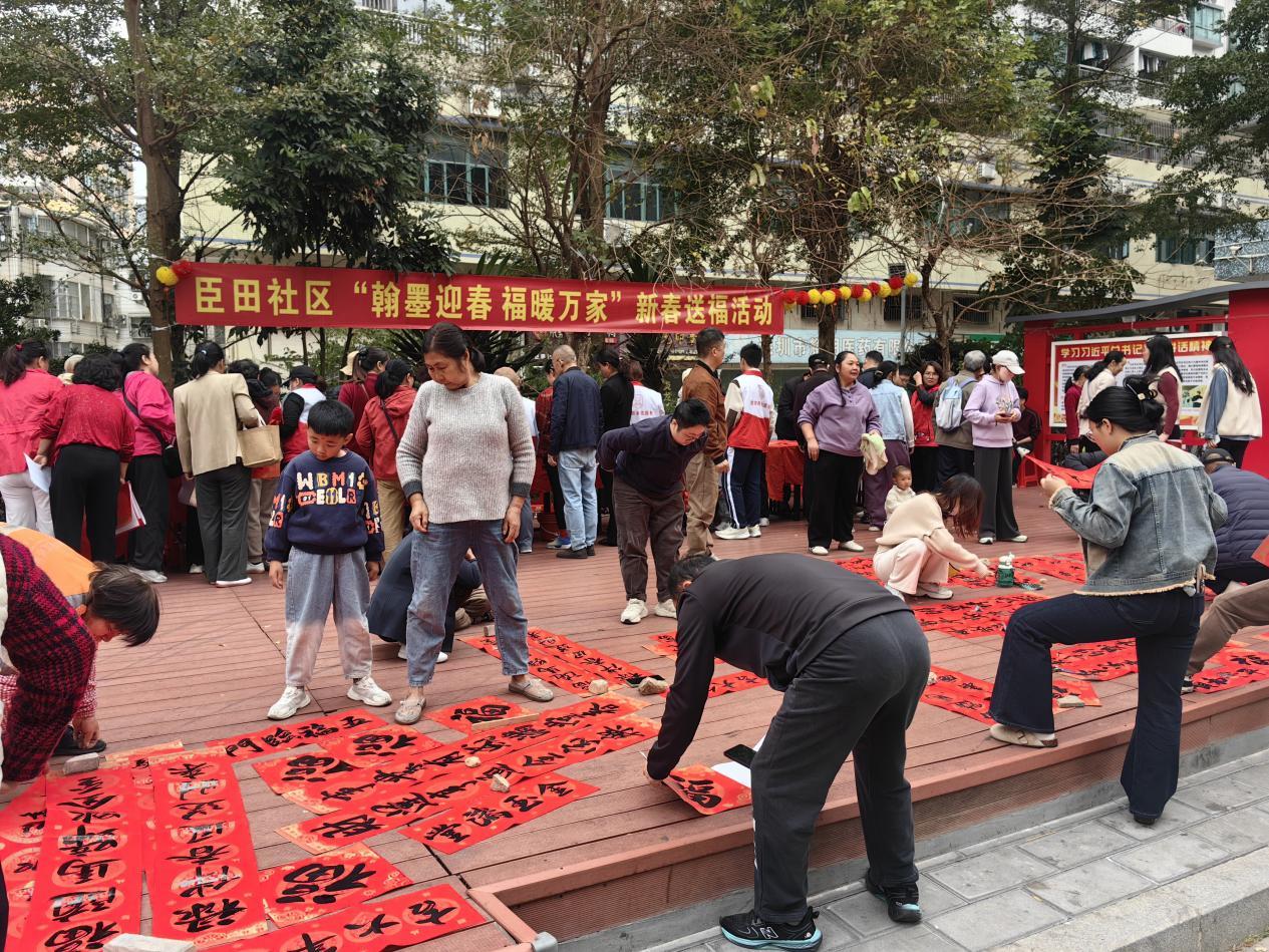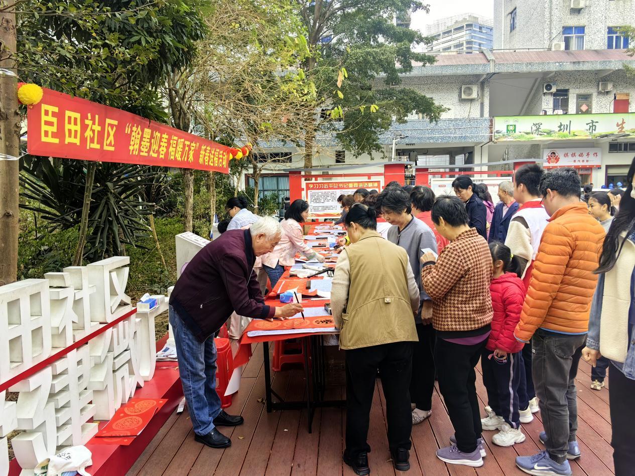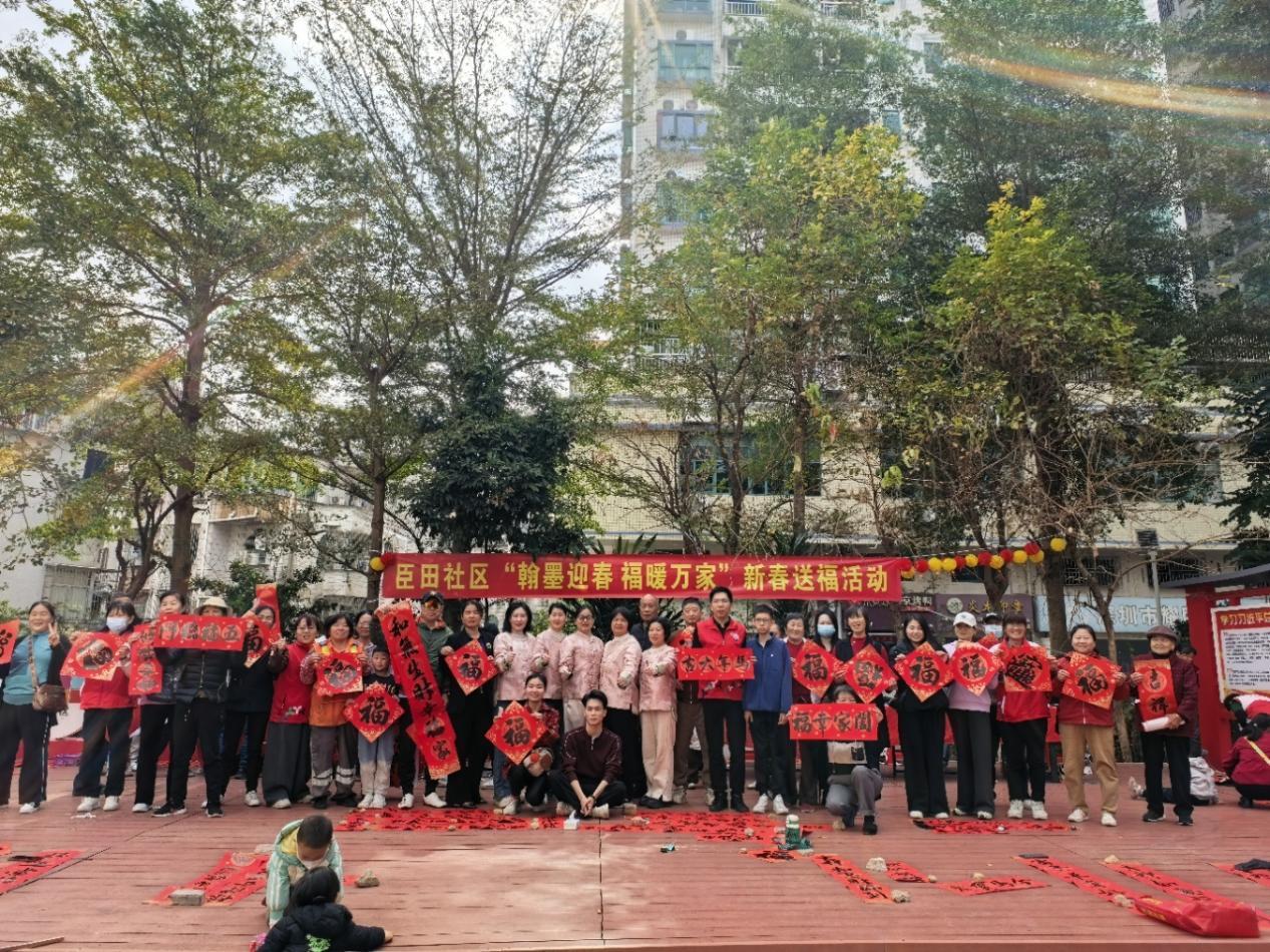腊月时节,年味愈浓。1月29日上午,西乡街道臣田社区党群服务中心党建微广场墨香氤氲、暖意融融,一场以“翰墨迎春·福暖万家”为主题的送福新春活动圆满举行。活动以书法为媒传承中华优秀传统文化,扎实推进“我为群众办实事”实践活动,近300名社区居民参与其中,收获了饱含温度与文化底蕴的“精神年货”。