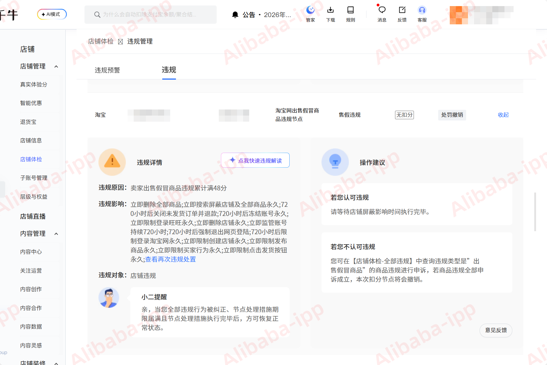 【连锁反应:三日三“震”步步紧逼】随后两天,同样的小米耳机商品甚至其他配件链接接连被标记,处罚从单一商品扩展到店铺限制。此时商家仍未充分警觉,直至第三天,平台直接发出封店通知:店铺强制关闭,并处6000元罚款。商品链接全部删除,店铺权重归零,且后续活动报名资格均受限制。一夜之间,经营多年的店铺面临归零风险。