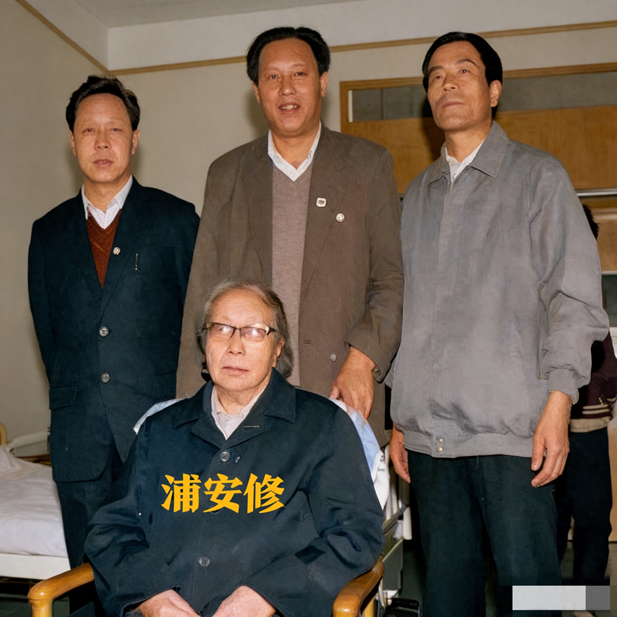 这张摄于1990年11月的老照片,定格了浦安修晚年最令人心碎的时刻。彼时,她因长期操劳与旧病复发,正卧病于北京某医院。画面中,几位晚辈前来探望,而坐于椅上的浦安修面色憔悴、神情枯槁,昔日的风采已荡然无存,唯有满身疲惫与心事重重。仅仅半年后的1991年5月,这位饱经沧桑的老人便溘然长逝,结束了充满坎坷与遗憾的一生。