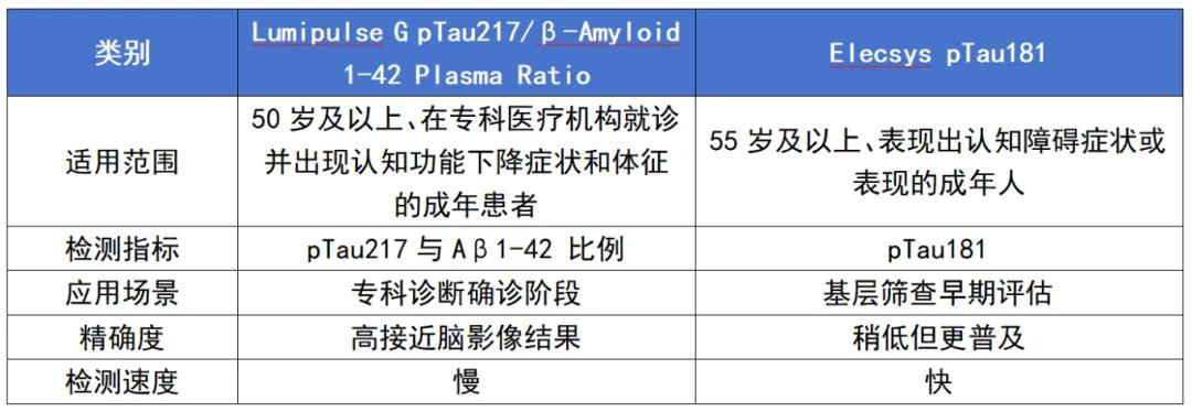 两款血液检测产品的获批,为临床AD诊断带来了新的方法,同时,两种方法也存在差异,具体见表1。
