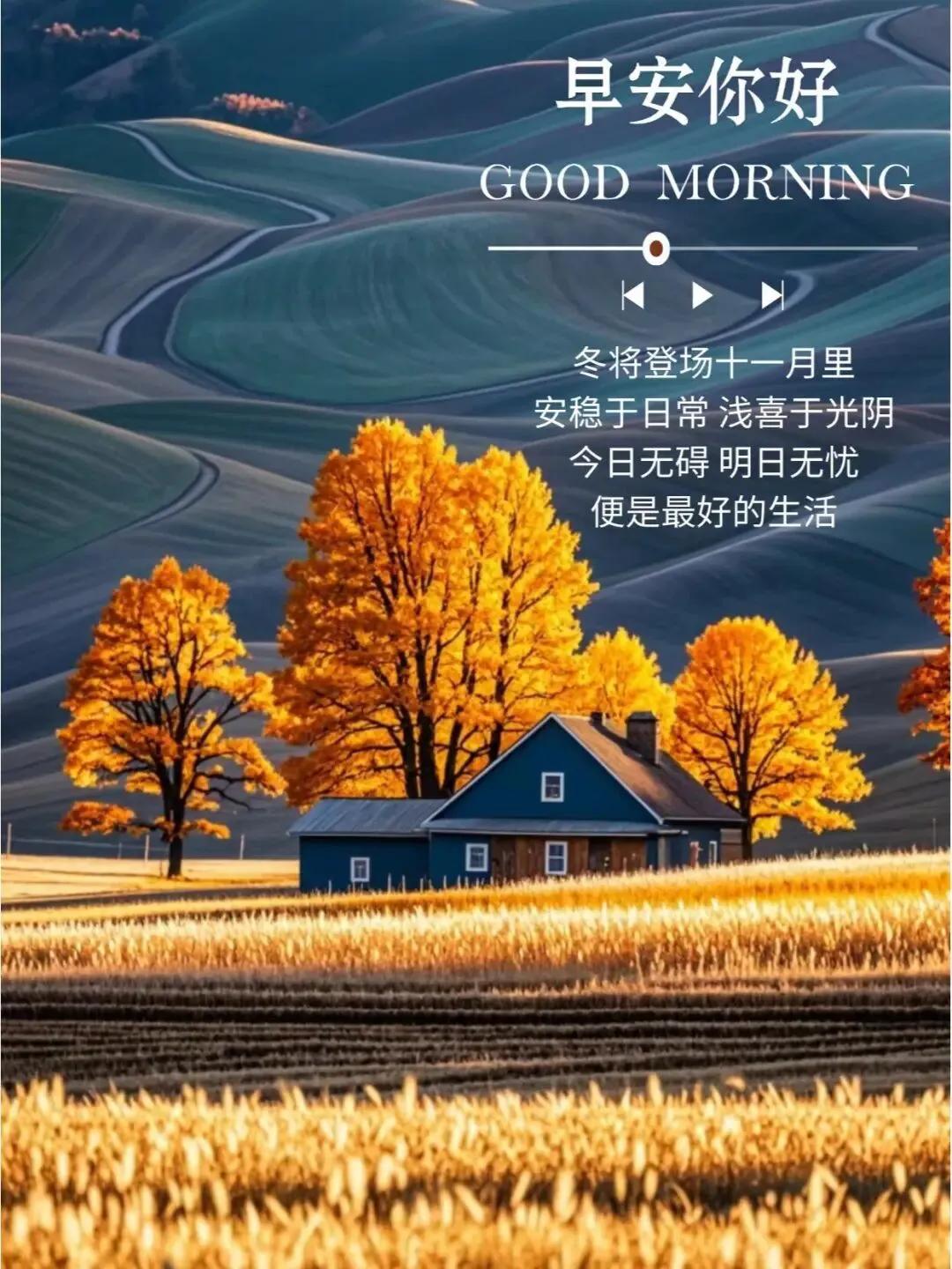 十月的故事已落下帷幕,十一月的序章正缓缓开启。愿你保持善良,但不必委屈自己;愿你温柔待人,但也懂得拒绝。善良要有锋芒,温柔要有底线。把生活过成诗,简单而精致。在冷暖交替里,收获岁月的奖赏,收获满满,幸福安康。
