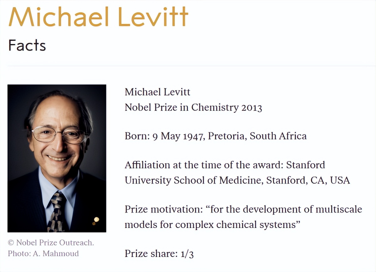 图 | 诺贝尔奖官网对莱维特教授的简介(来源:诺贝尔奖官网)