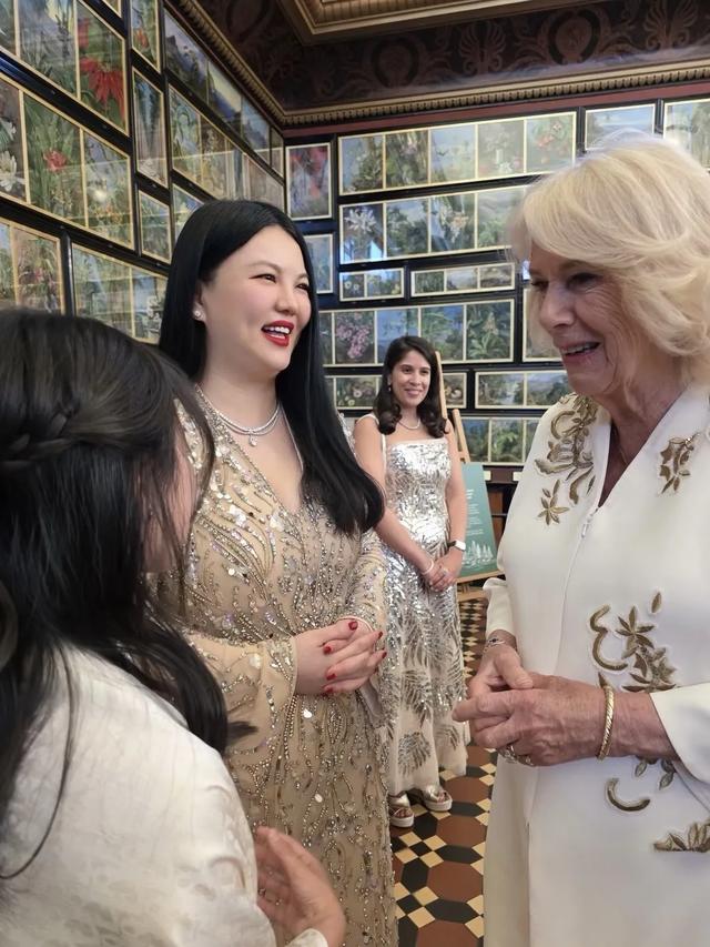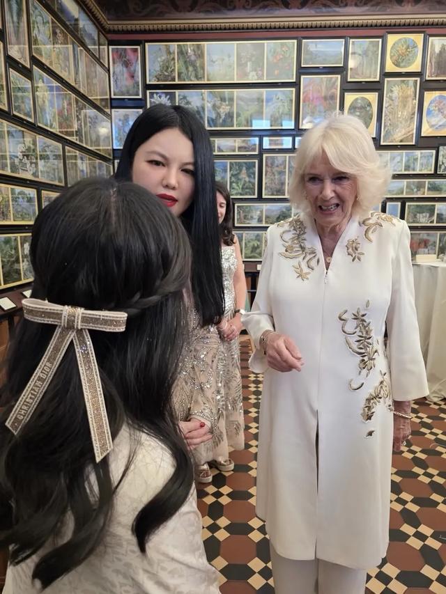 李湘带着女儿见英国国王的妻子卡米拉。满头白发的卡米拉可是查尔斯的最爱,不过这位老人看起来还挺和蔼可亲的。
