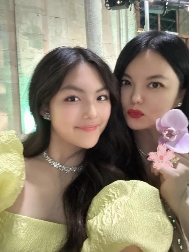 李湘对这场宴会特别满意,她和王诗龄开心地自拍着,心情特别好。