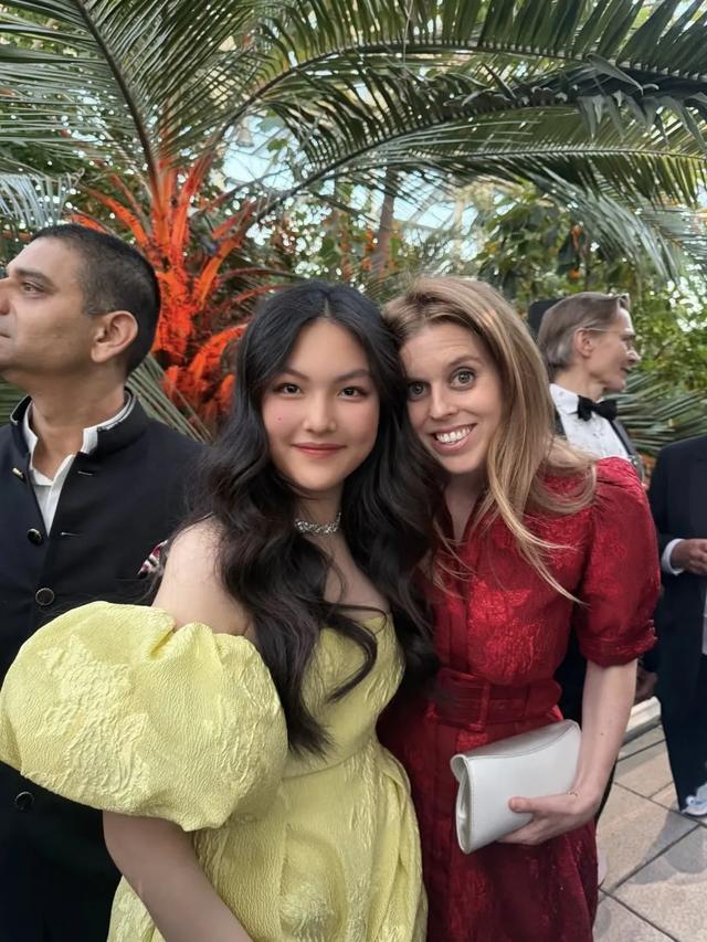 王诗龄和英国公主碧翠丝合影,外国人的长相真的很不抗老,36岁的她看起来比李湘还老,这大眼珠子有点可怕,抬头纹太明显了。王诗龄站在她身边都显得很好看。