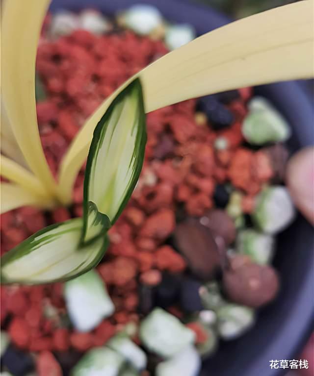 接着,2015年的时候,南靖兰家刘志云收获一盆叶片呈雪白叶艺的福州素荷,黄志雄从其处引种了两个头的中透小苗,经过5年精心培育,使其长成艺向相对稳定的中斑艺和中透艺植株。
