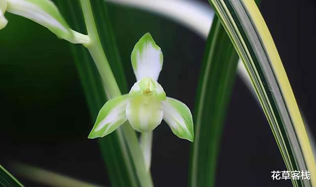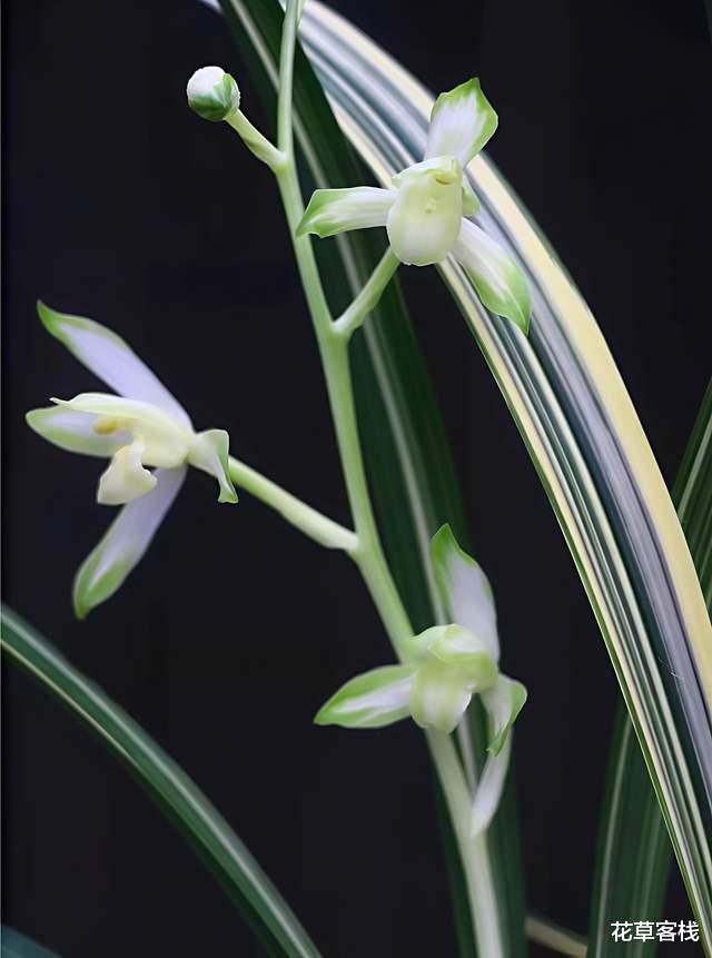 花为绿杆绿花,花朵纯洁无杂色,硕大美观,花瓣圆润肥厚,花舌中间带有部分红色斑点,一般一株能盛开出四朵左右的花,花开出架,极具气势。