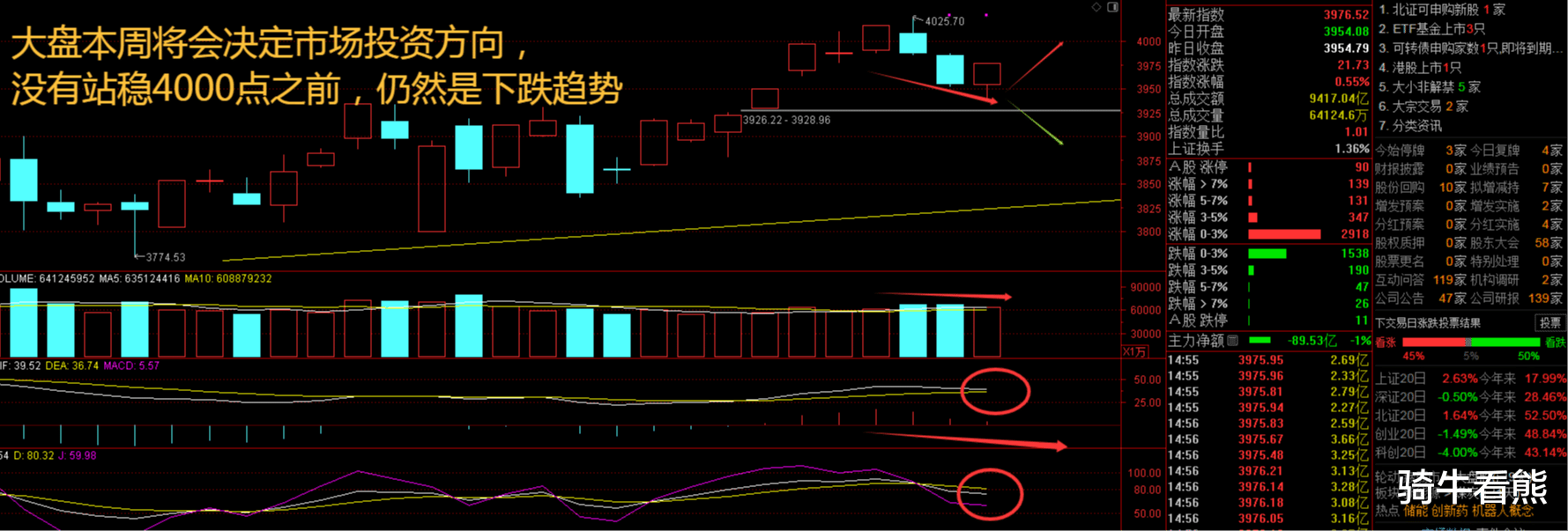 大盘在4000点附近你来我往,每上100点都会让人感觉“好难”呀!A股市场结构性行情出现一定程度的弱化,引发指数调整。中美贸易谈判、三季报、四中全会召开结束后,市场进入到一段时间的业绩、事件、政策的真空期,市场缺少决定方向的催化剂,预计行情以震荡为主。现在的上车与否,关键在于你赚钱了没有,希望放在心里,操作上必须有盈利才能再上仓位,否则就是去“赌明天”!