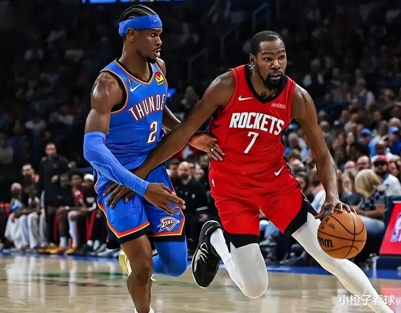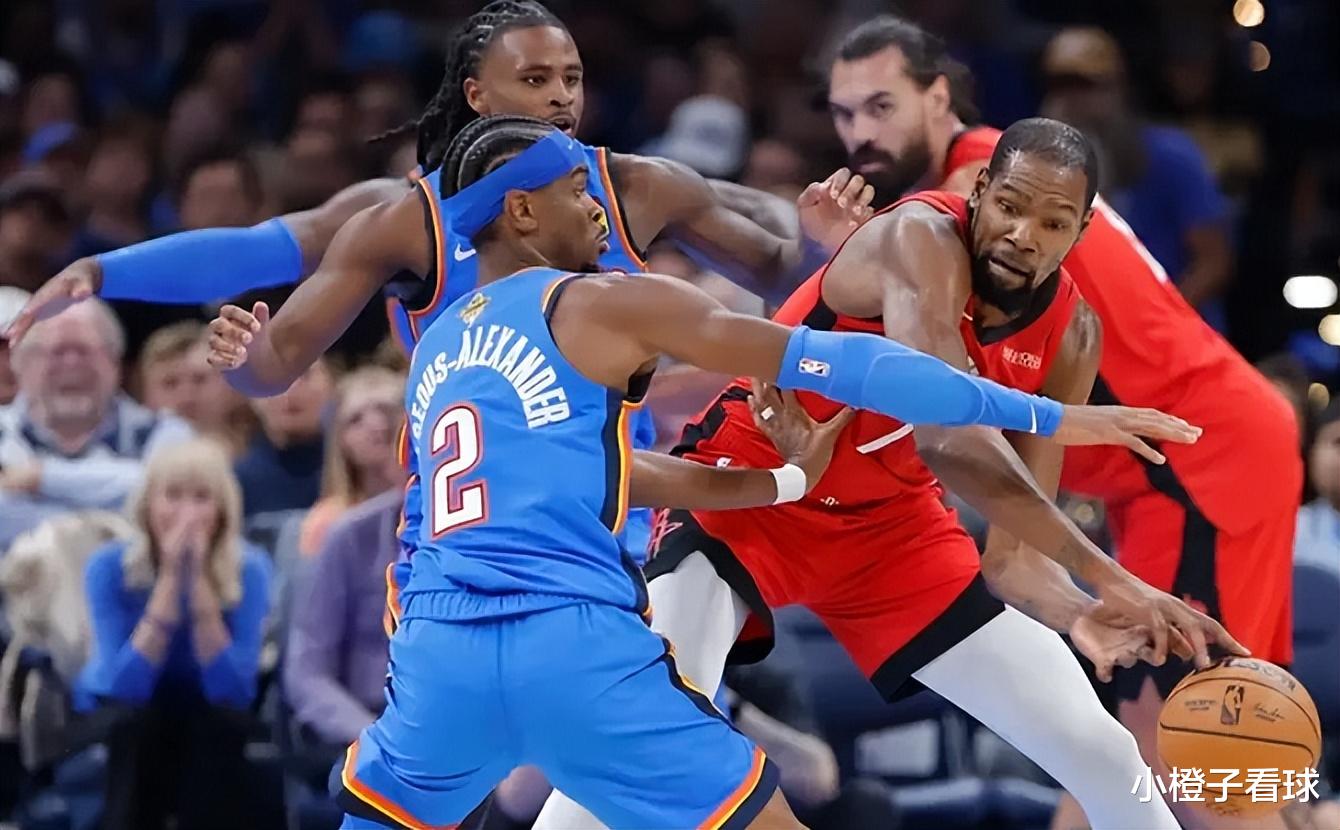 NBA常规赛揭幕战,卫冕冠军雷霆队在主场迎战休斯顿火箭队。这是上赛季西部第1和西部第2的较量,也是本赛季西部巅峰对决的预演,更是杜兰特和SGA两代俄城之王的正面对决。这场比赛,两队战至双加时,火箭队在领先12分的情况下痛失好局,惨遭逆转,雷霆队以125-124险胜火箭队。据统计,这是NBA历史上第6次双加时揭幕战,上一次还要追溯到2005年。