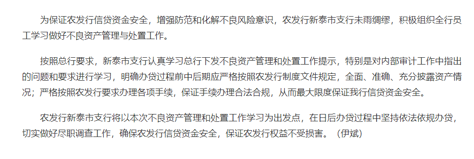 农发行新泰市支行做好不良资产管理和处置工作学习