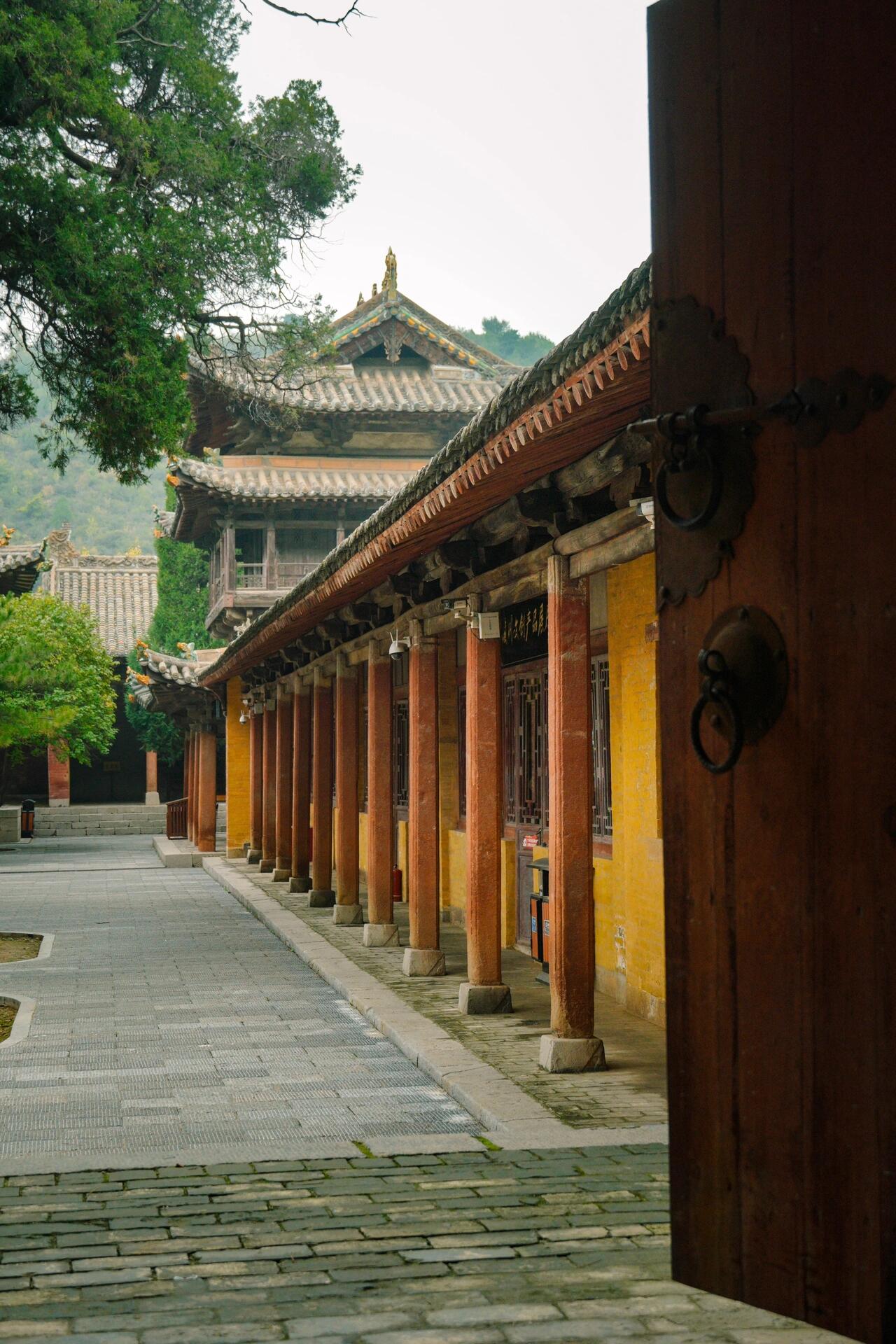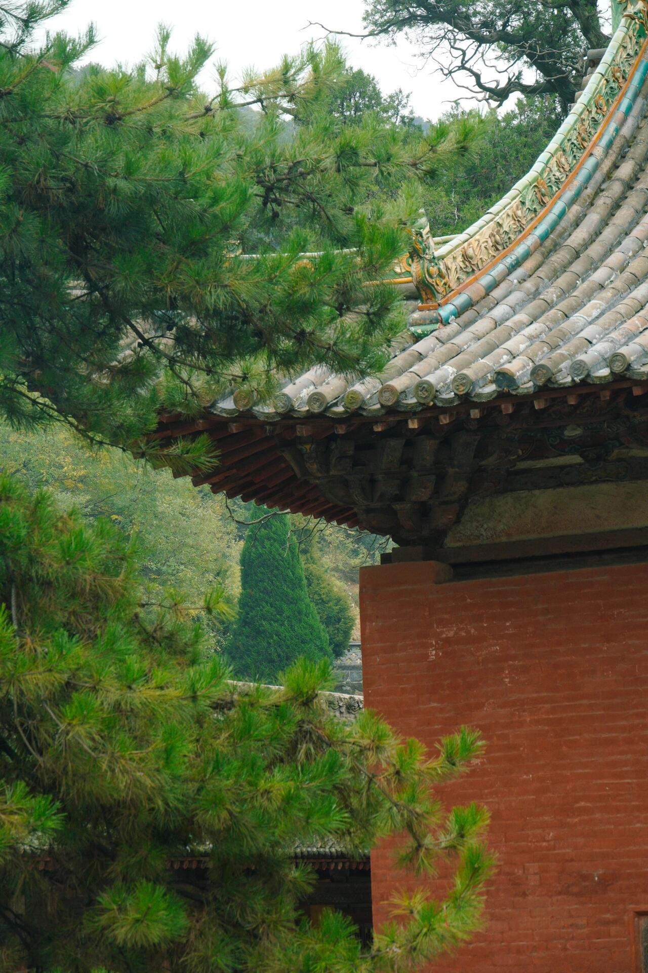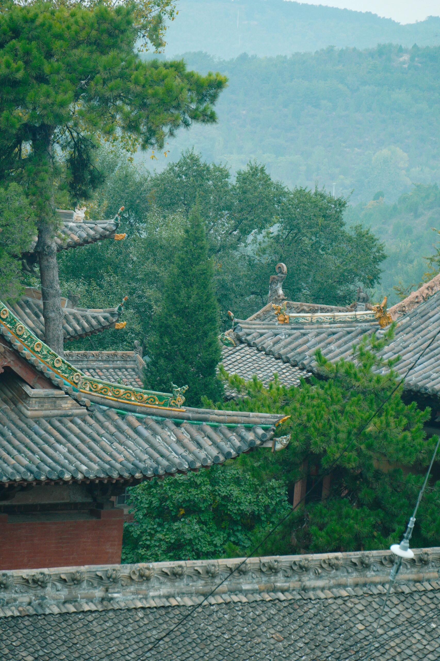 晨雾中的建筑呈现出特殊的透视效果。山门戏楼的翼角在雾中若隐若现,与远处的山峰轮廓形成"虚实飞檐"的对话;金代楼阁的琉璃脊饰在水汽中折射出虹彩,与溪谷中的晨露形成"天上人间"的镜像。这种"雾中看庙"的体验,暗合宋代山水画的"米氏云山"技法——建筑不再是固态的存在,而是与云雾、流水、草木共同构成的动态画卷。