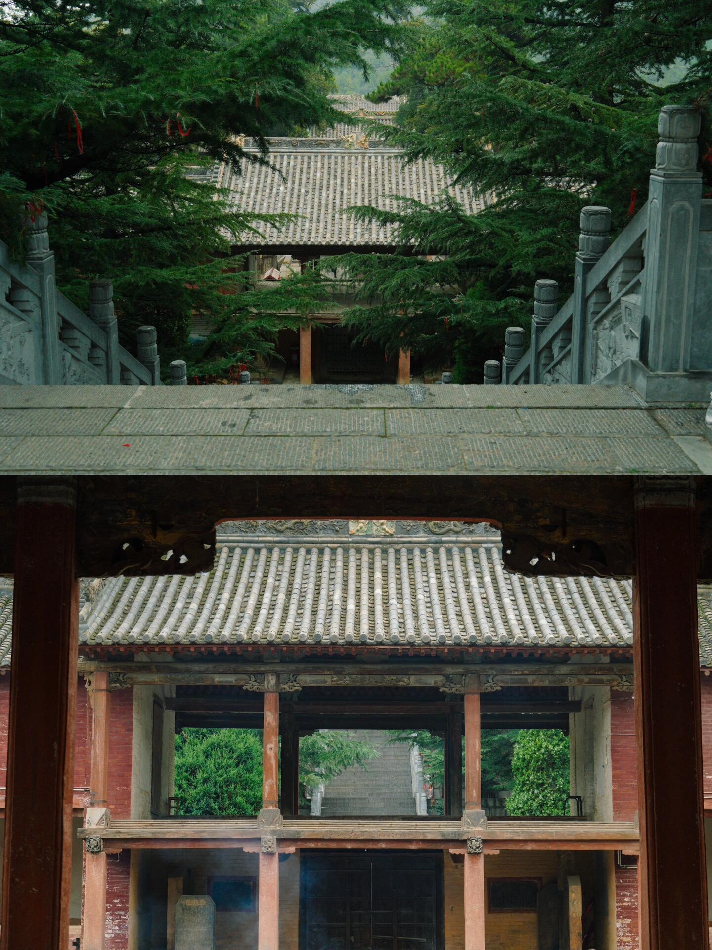 陵川的晨雾漫过西溪河谷时,二仙庙的三重檐歇山顶正在乳白色的氤氲中显影。这座背倚九仙山、面朝丹河水的古刹,用金代楼阁的稳健斗拱、元代中殿的疏朗梁架、明代戏台的翼角飞檐,在太行山褶皱里铺展成一幅可触摸的宋画长卷。当同行者将茶盏搁在金代经幢旁,水汽与古柏清香在碑刻间流转,那些被晨雾洇湿的屋脊、斗拱、碑铭,正以最质朴的方式,诉说着中国古代建筑与自然共生的智慧。
