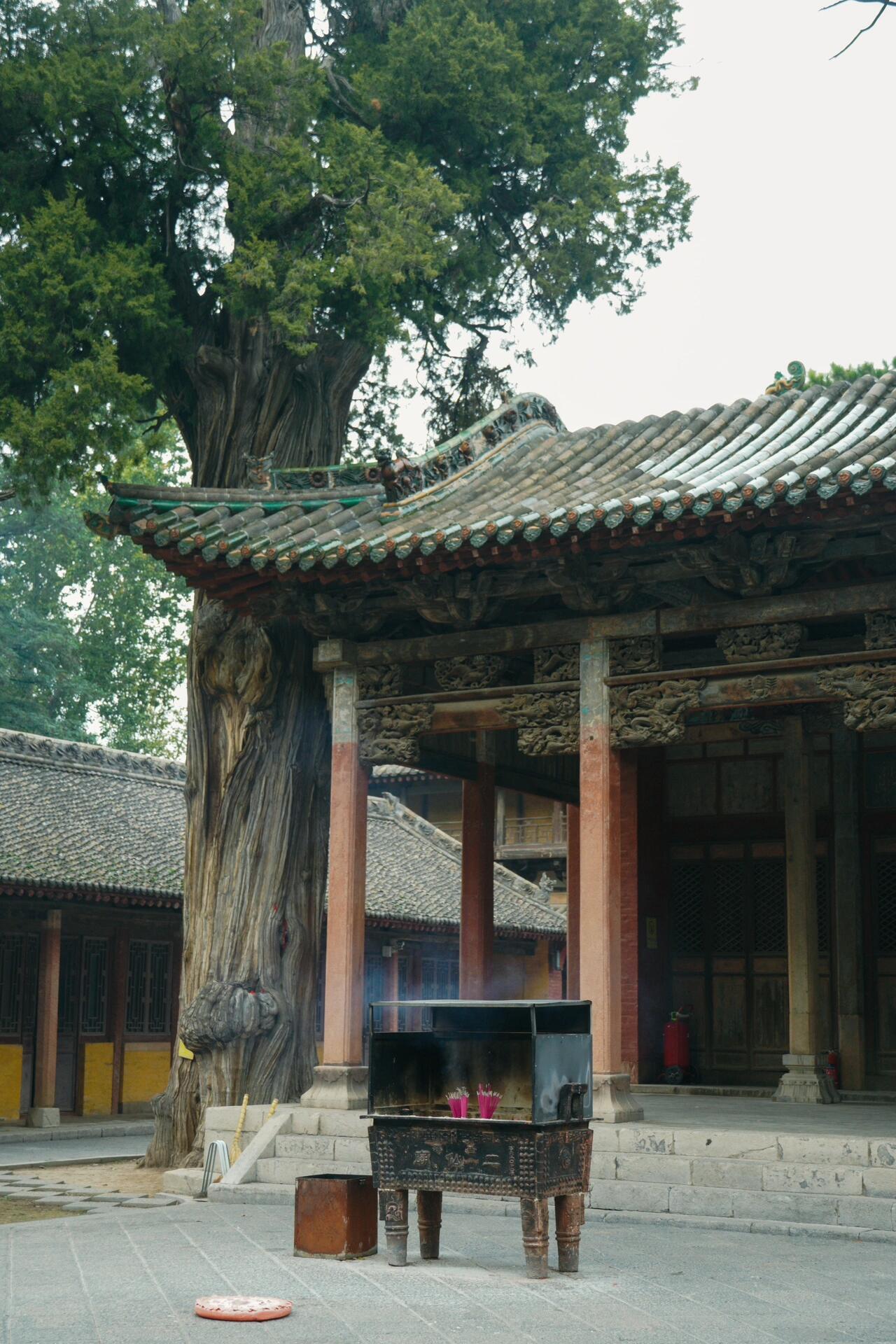 在庙内品茶读碑的体验,揭示了古建保护的另一种可能。金代经幢的基座被用作茶桌,表面的梵文刻经与茶杯的年轮形成有趣对比;元代中殿的柱础石上,留有清代匠人修补时的墨书题记,这些"非官方"的修缮痕迹,比博物馆的展签更能诉说建筑的生命史。同行的古建筑学家指出,庙内的清代廊房采用"包镶法"修补金代木柱,这种"新旧共生"的策略,与当代"最小干预"的保护理念不谋而合。