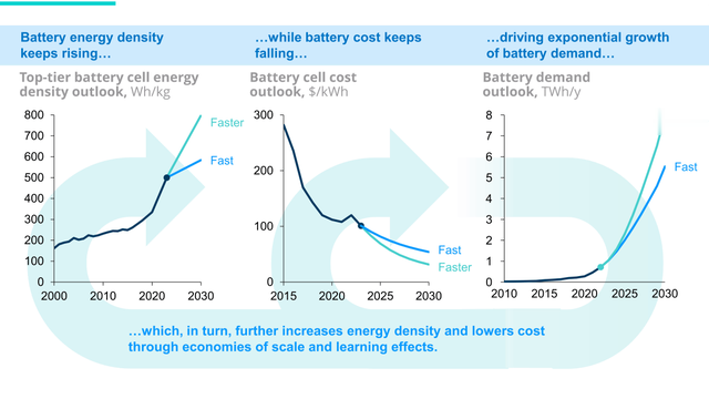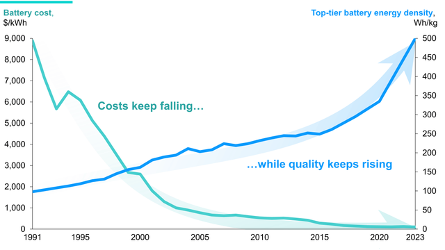 图表2:自1990年以来的电池成本和能量密度