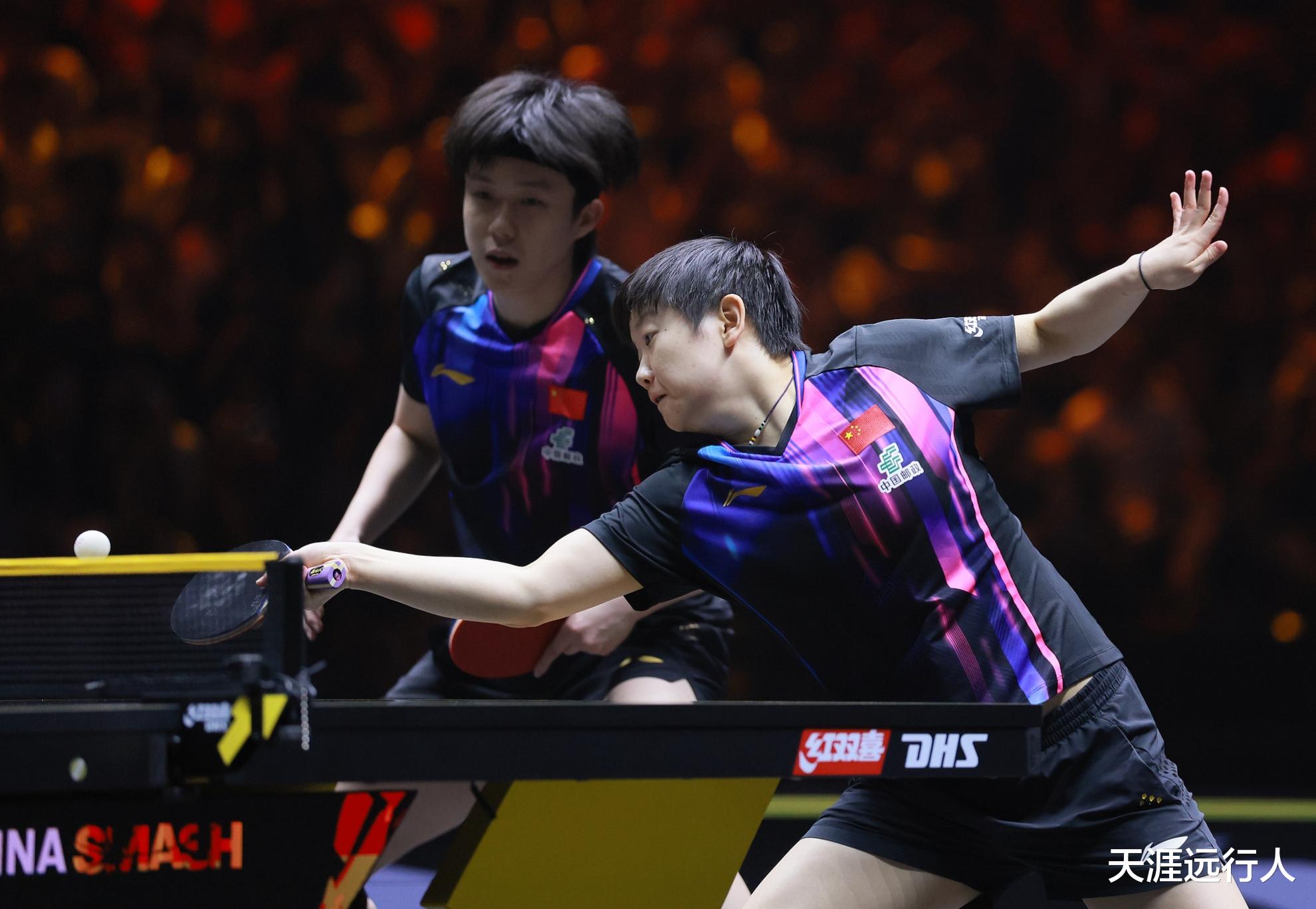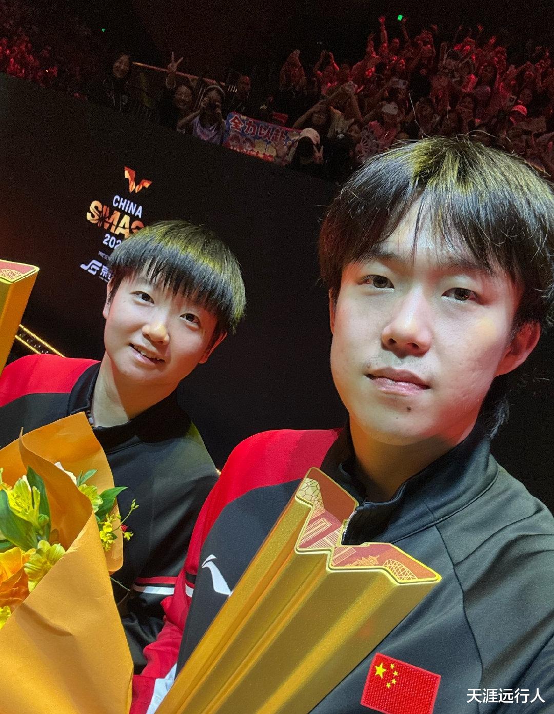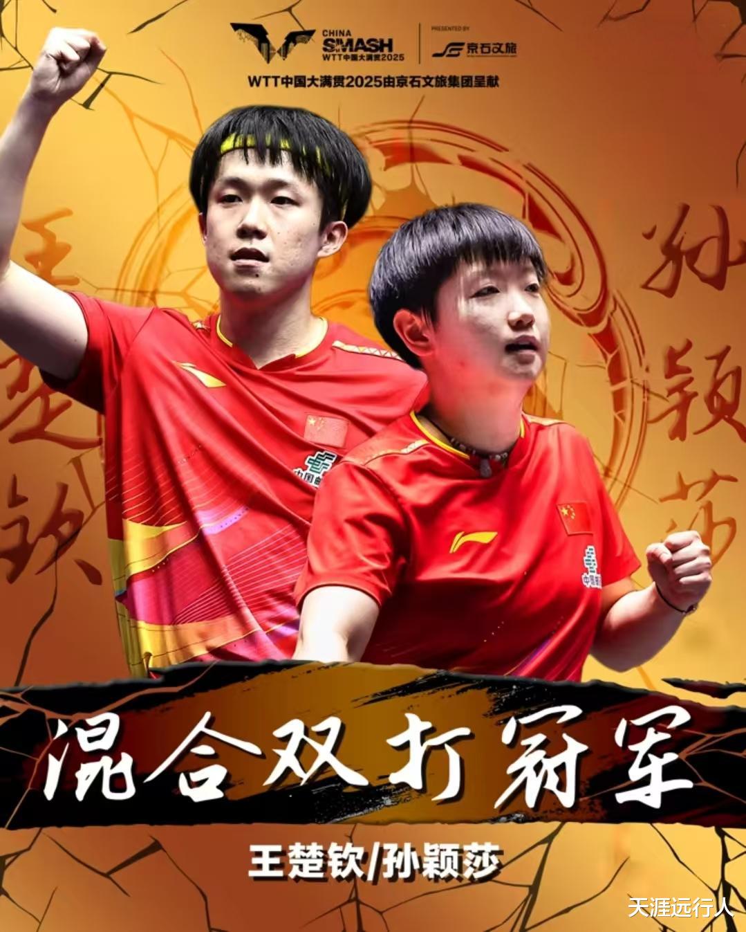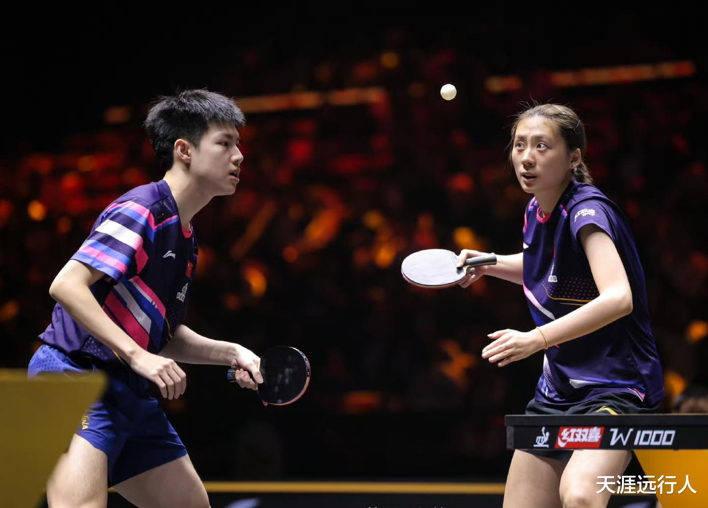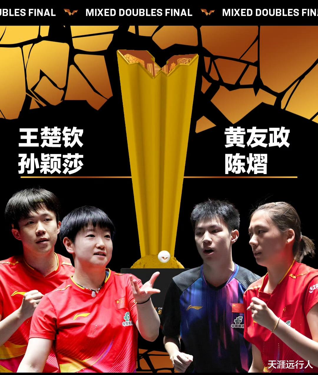 混合双打决赛,国乒德比王楚钦/孙颖莎3-0战胜黄友政/陈熠,夺得冠军。