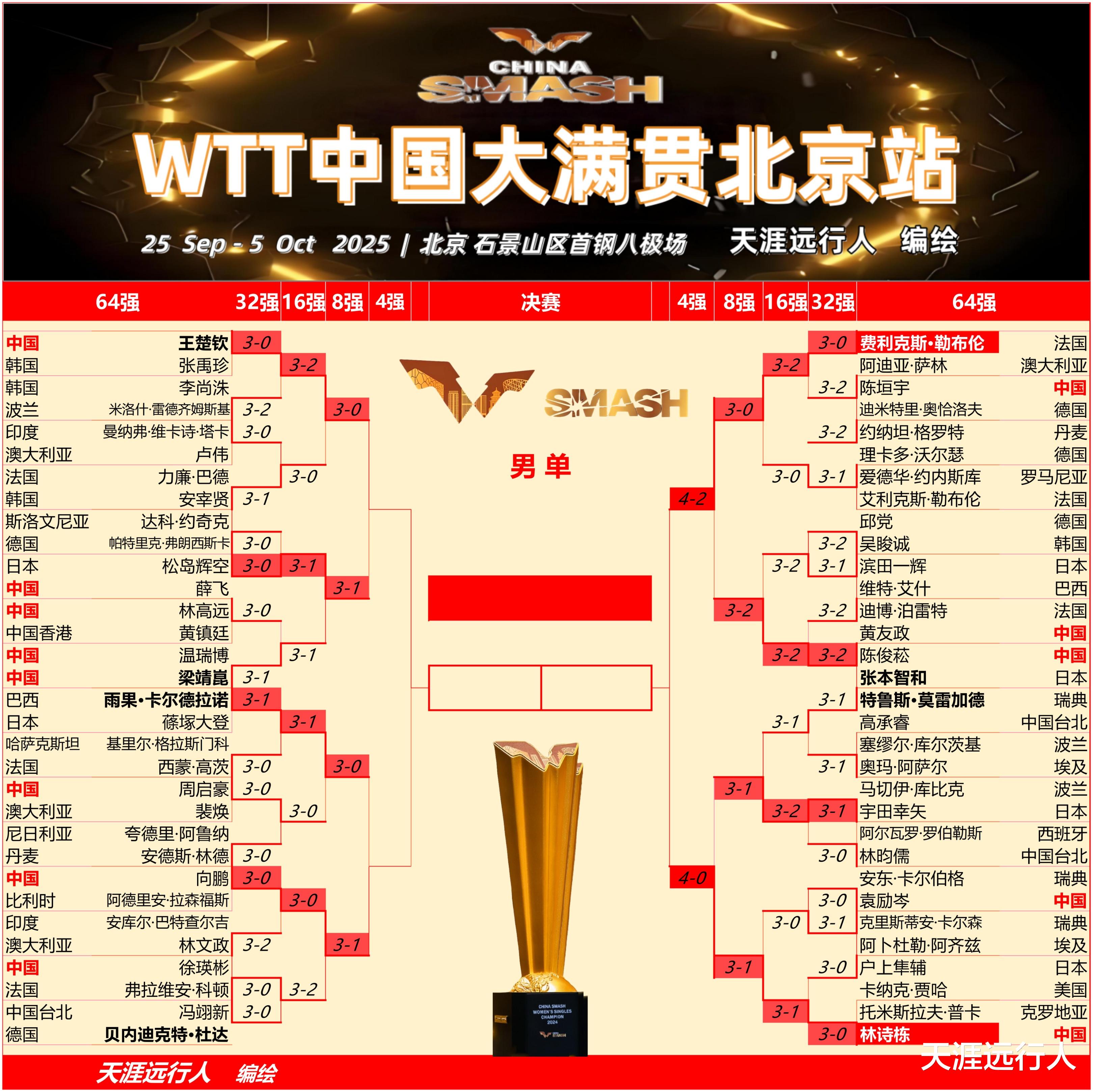 WTT中国大满贯丨男单1/4决赛下半区战报赛况