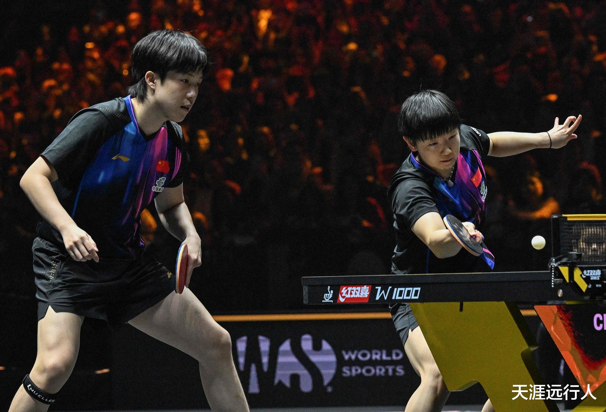 王曼昱/蒯曼,国乒德比以3-0(11-6,11-7,12-10),战胜陈幸同/钱天一,跻身决赛。