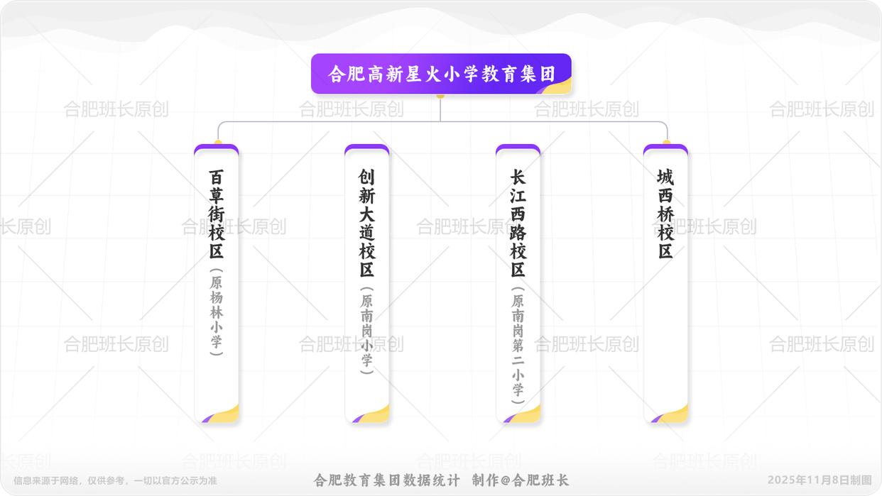 2025年8月新成立星火小学教育集团,下辖百草街、城西桥、创新大道与长江西路4个直属校区。