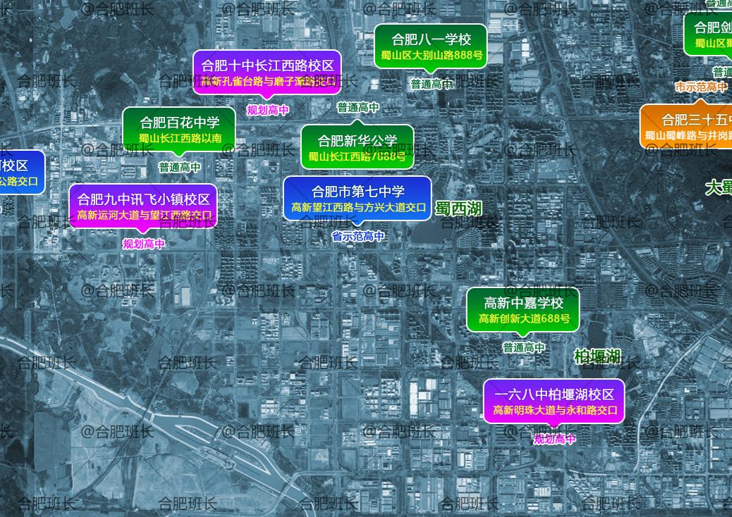 除此之外,高新区私立教育资源也比较丰富,目前有新华公学、高新中加学校、百花中学、八一学校等,可以提供差异化的教育服务,高中方面除了正在招生的合肥市第七中学,还规划建设合肥第十中学长江西路校区、合肥第九中学讯飞小镇校区和一六八中学柏堰湖校区。