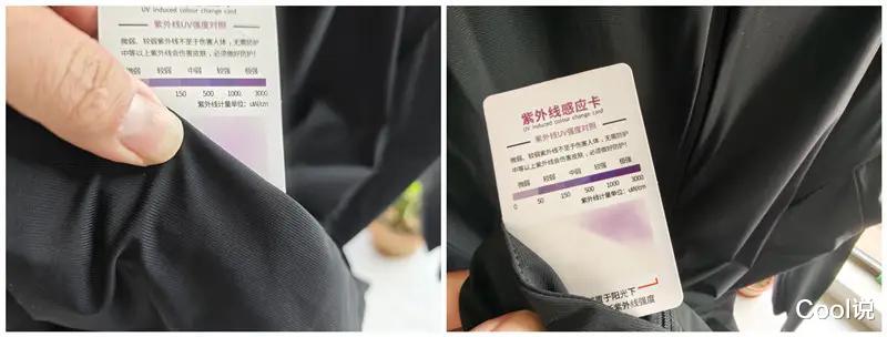 重点来了,作为防晒衣,核心还是防晒力,这款北归线T8真的没让我失望。它是原纱型防晒,不是那种后期涂层的,防晒因子直接织进纤维里,这就意味着洗多少次都不会失效,不像我之前买的涂层防晒衣,洗个三五次就跟普通外套没区别了。我特意做过测试,用紫外线测试卡,一半用防晒衣盖住,一半暴露在太阳下,就晒了十几秒,暴露的部分直接变成深紫色,而被盖住的部分还是纯白色,防晒效果肉眼可见。