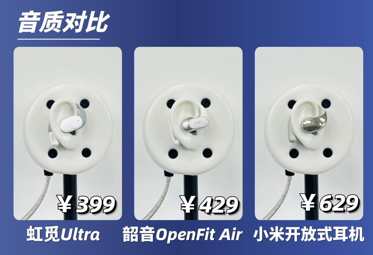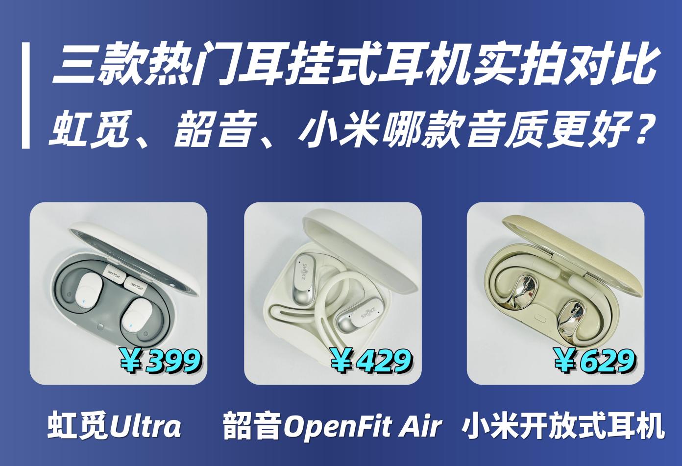我这段时间实际体验了多款主流开放式耳机,对比下来留下三款各有特色的热门款:399 元的虹觅 Ultra、429 元的韶音 OpenFit Air、629 元的小米开放式耳机。三款价格覆盖 300–600 元价位,定位和体验差别明显,与其被宣传误导,不如从真实佩戴、音质、续航、漏音控制等维度实测对比,帮你直接选对、不踩坑。