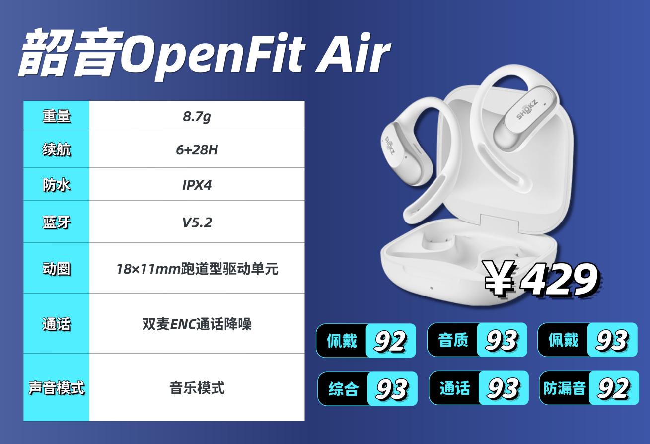 如果以运动使用为主,偶尔通勤听歌,韶音 OpenFit Air 会更合适,它的佩戴牢固度是三款里最好的,中高强度运动也不容易掉,音质氛围感也不错,基础功能够用。虽然防漏音和防水一般,但刚好贴合运动核心需求,是一款实用的运动向开放式耳机。