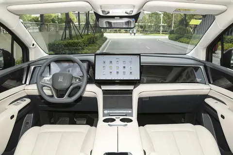 内饰布局方面,比亚迪夏提供远山黛、檀棕米两种双色内饰,看起来很上档次,“四水归堂”设计融入中式韵味,屏幕部分是15.6英寸可旋转中控屏与12.3英寸全液晶仪表的组合,顶配车型还支持26英寸AR-HUD功能,并且为副驾驶提供了一块12.3英寸的娱乐屏,后排也专门配置了一块15.6英寸大屏幕。