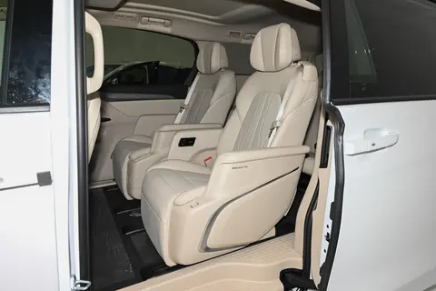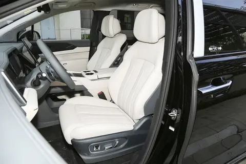 GL8陆尚同样支持前排座椅电动调节,不过第二排座椅电动调节和座椅加热通风功能只给了顶配车型,基础舒适性略逊一些。要说优势也是有的,得益于1807mm的车身高度,车辆第三排的头部空间相对宽敞一些,即便在满载情况下,也不会有太明显的局促感。这台车的后备箱基础容积比较大,能达到521L,第三排座椅放倒后可扩展到1650L,家庭出游的基本储物能力还是完全能满足的。