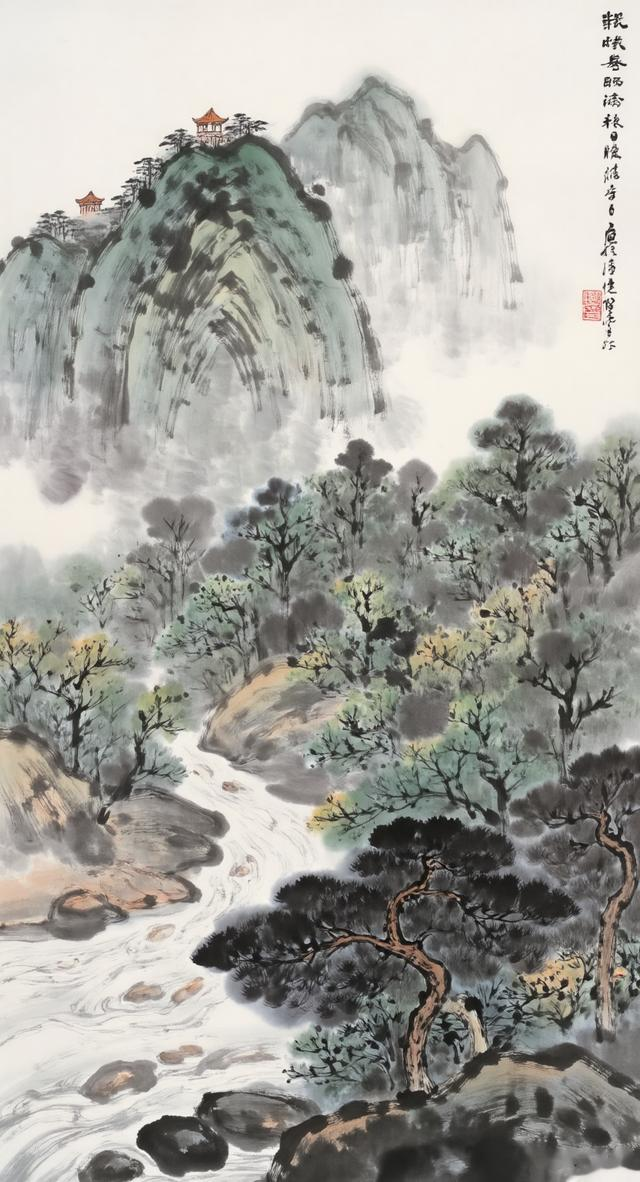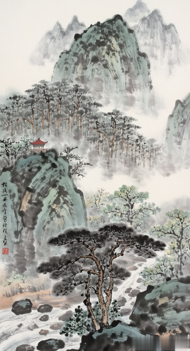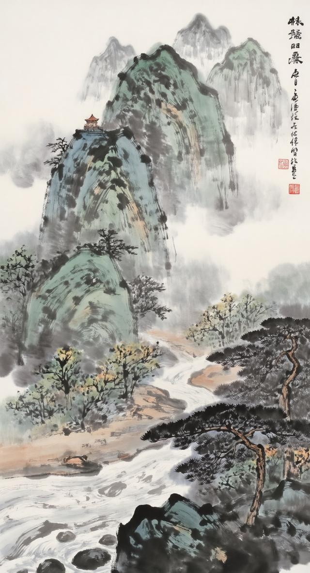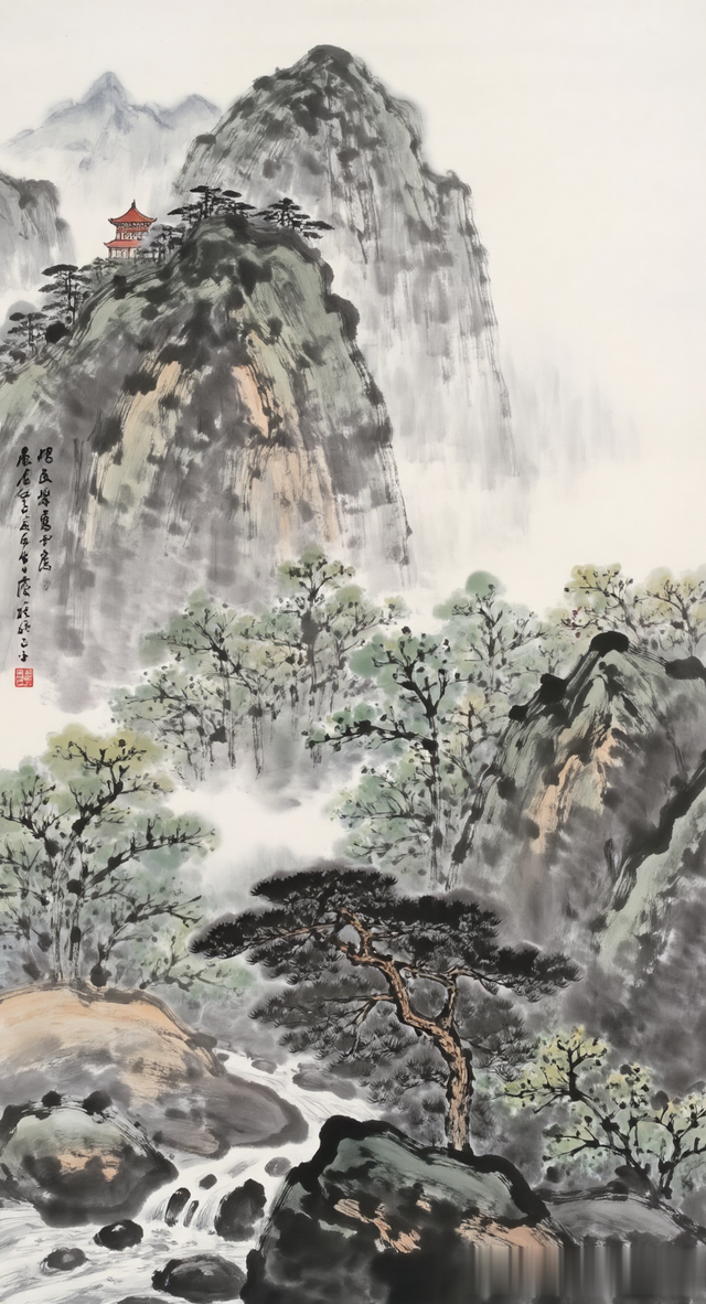 《峰寺逸韵》翠峰高耸入云端,古寺深藏雾霭间。松韵悠悠传雅意,静听流水忆流年。