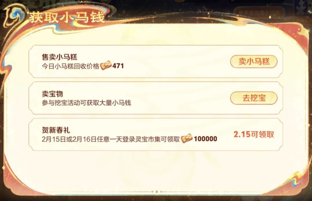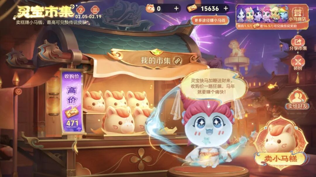每年春节必可不少的市集活动已经上线了。这一次叫小马商店,代币叫做小马钱。形状也换成新的纸币造型了。玩法上跟往年差不多,但是要警惕某些不良玩家偷偷把低价改成高价。